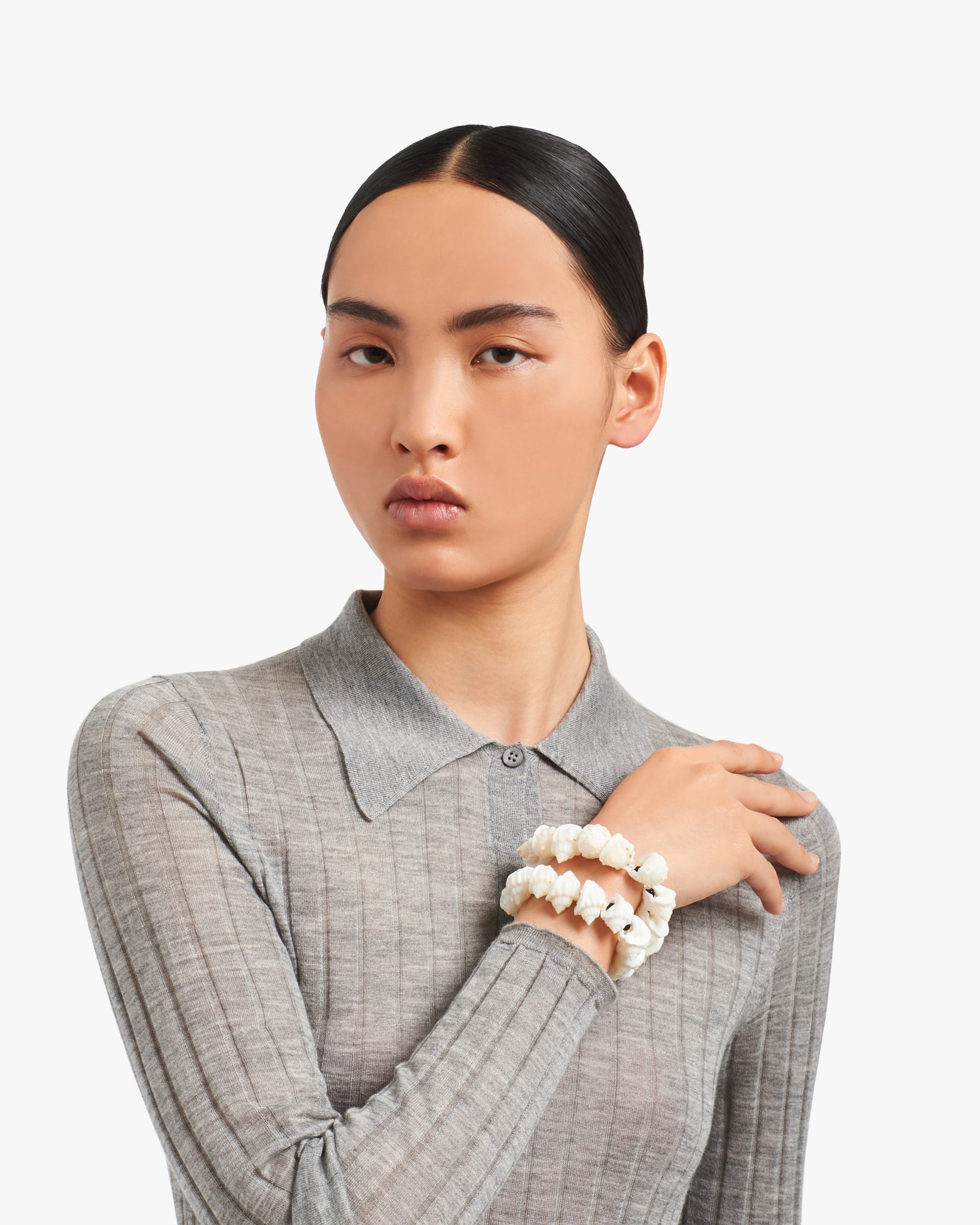 A refined and elegant design characterizes this necklace with shells. A mix of materials makes this jewel unique.