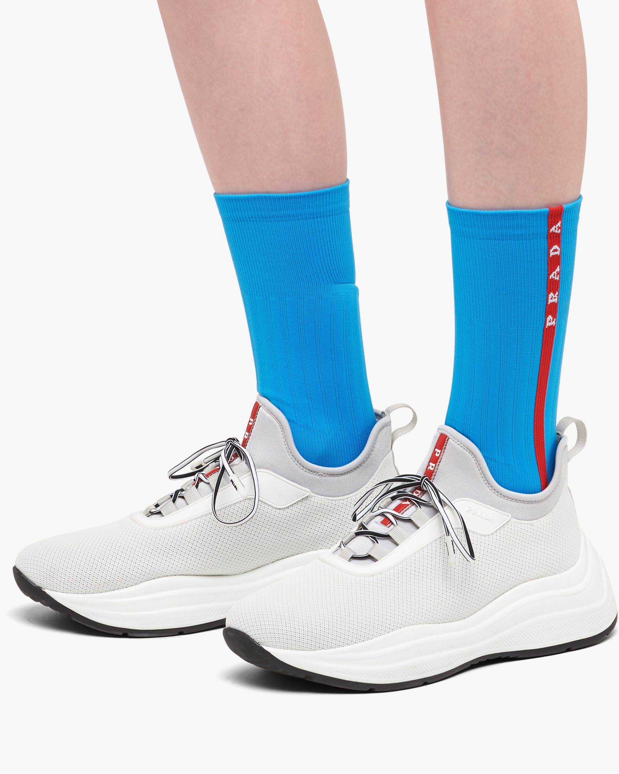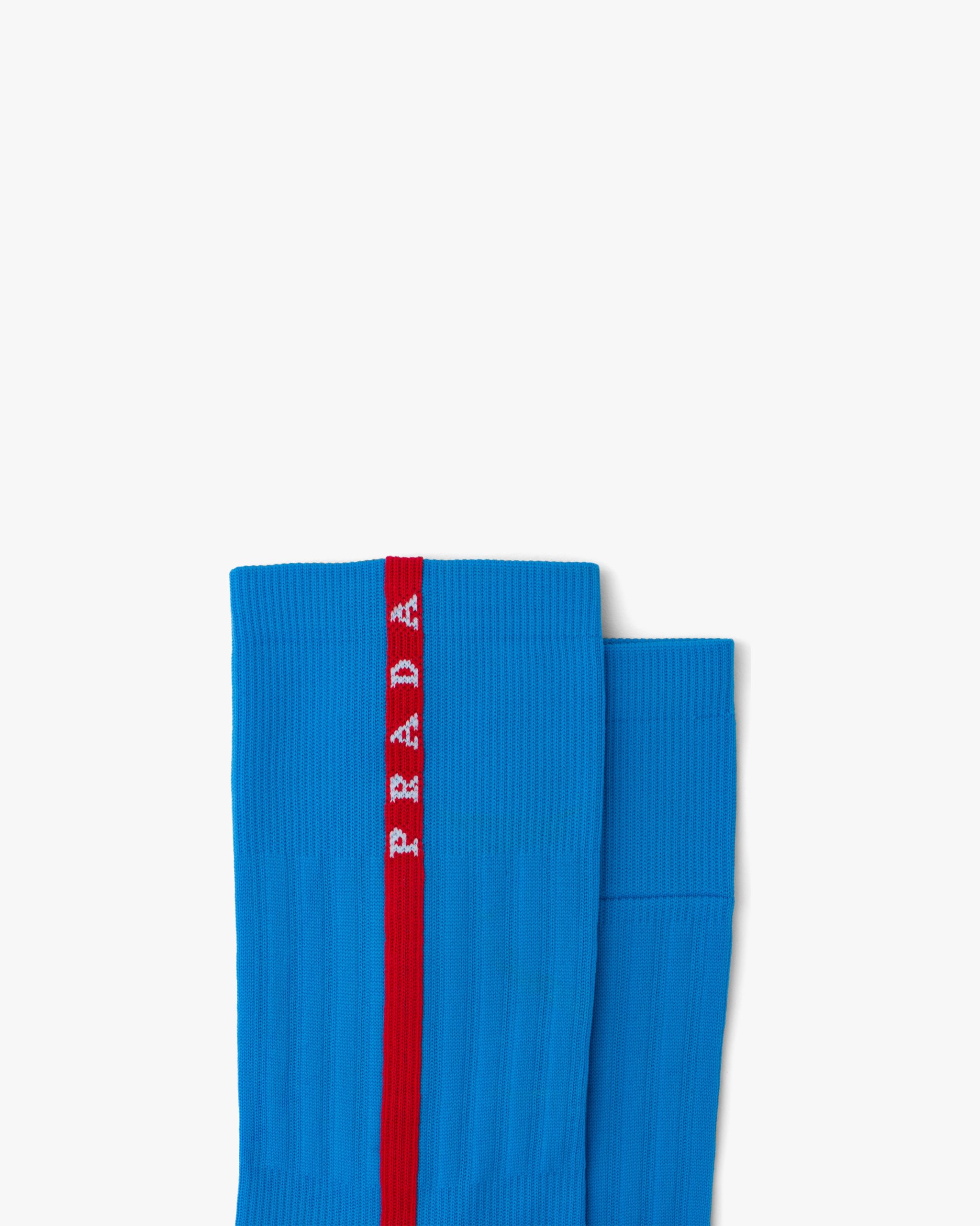 Ribbed knit nylon socks with Prada Linea Rossa intarsia logo.