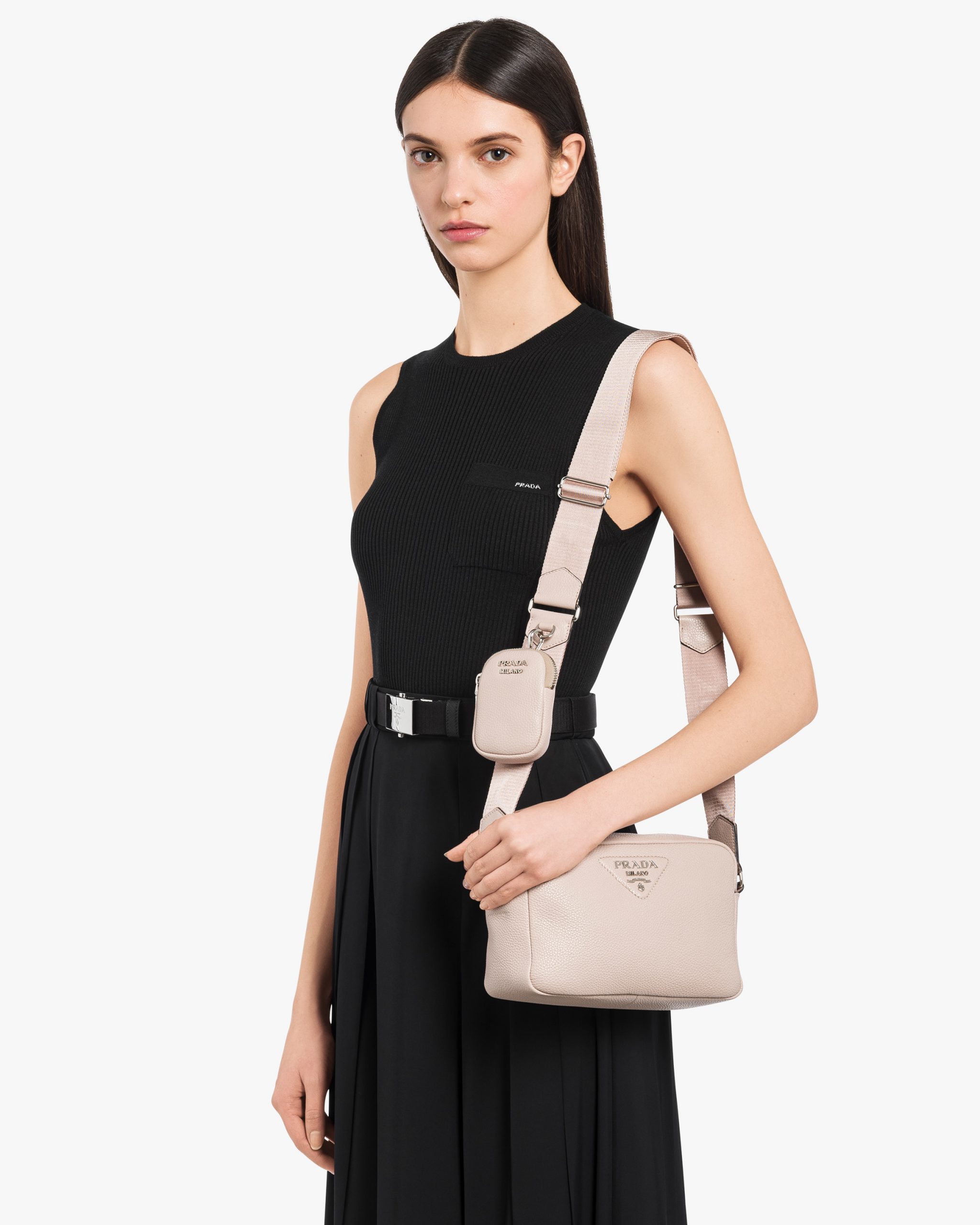 • Prada logo nylon lining with zipper pocket