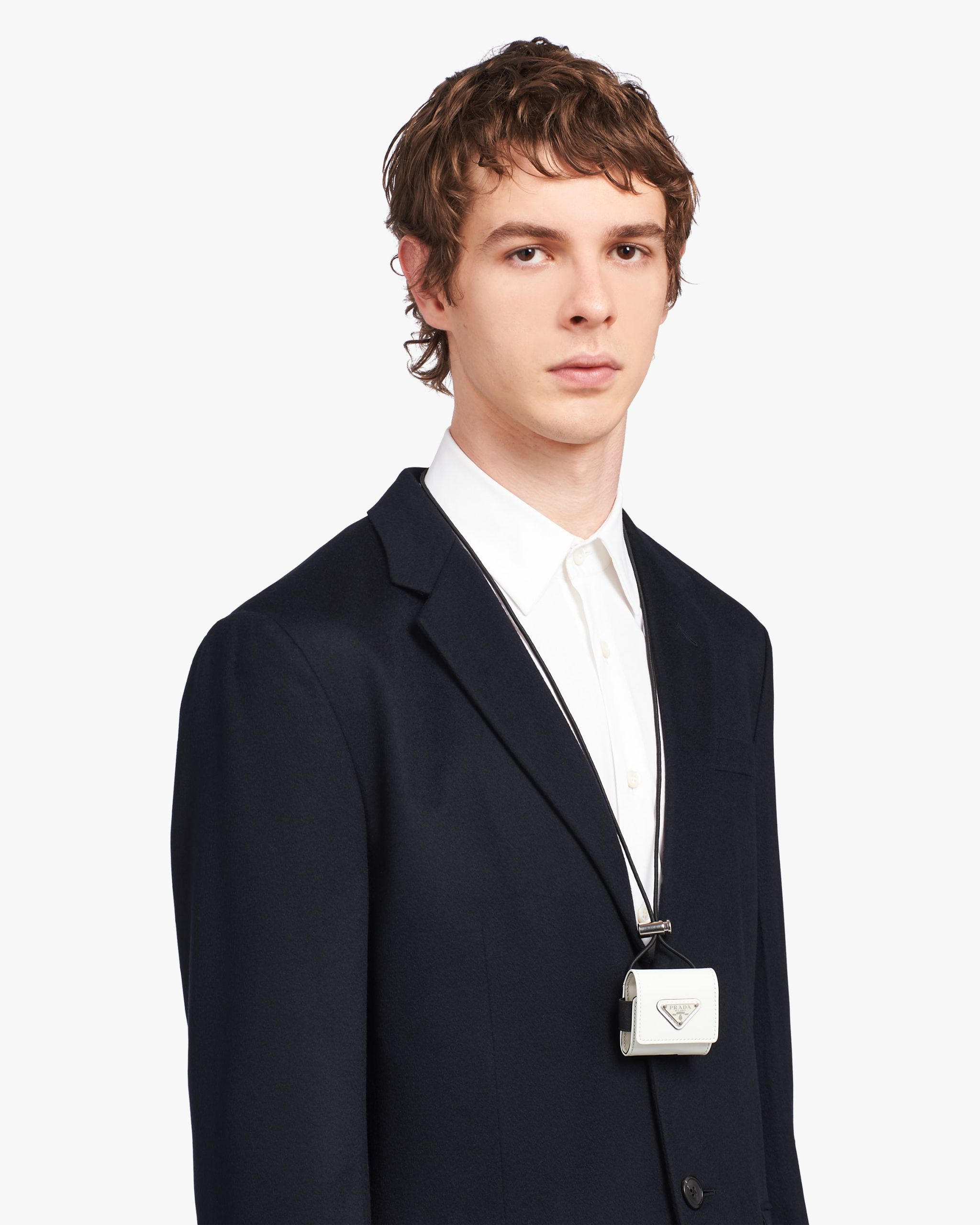 Technology, innovation and tradition come together in this AirPods Pro case made of brushed leather: an iconic material of the brand since the ’90s and historically linked to the luxury world. The accessory is decorated with the enameled metal triangle logo.