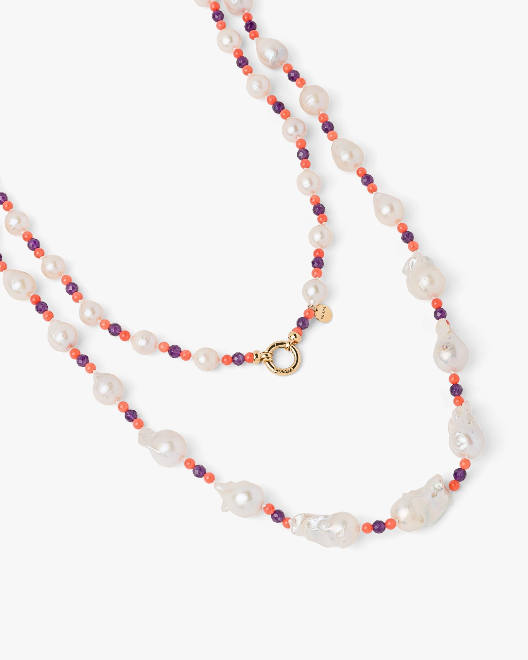White/amethyst Prada Fine Jewellery gold and pearl necklace