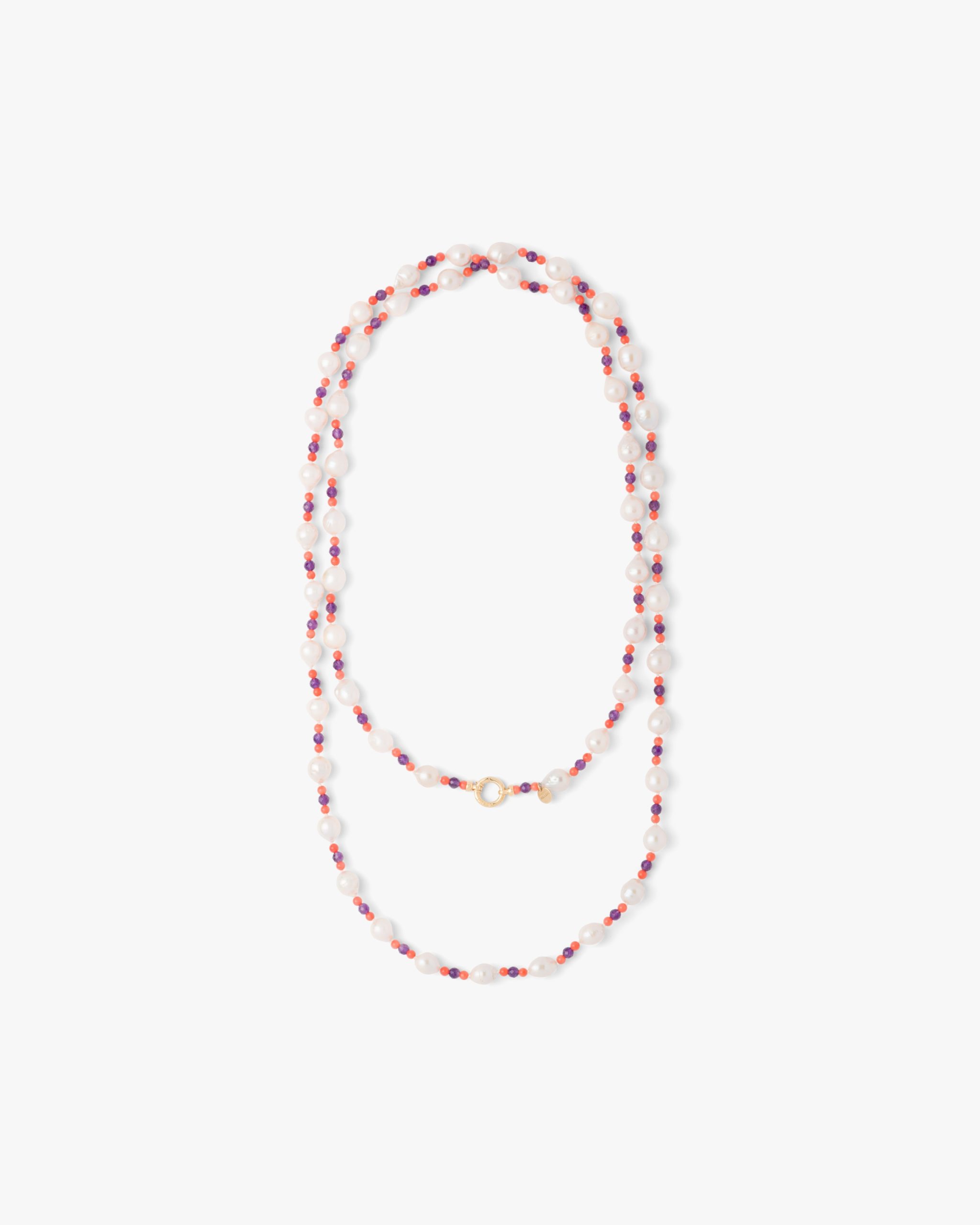 Baroque pearls decorate this necklace with turquoise and peridot paste beads.