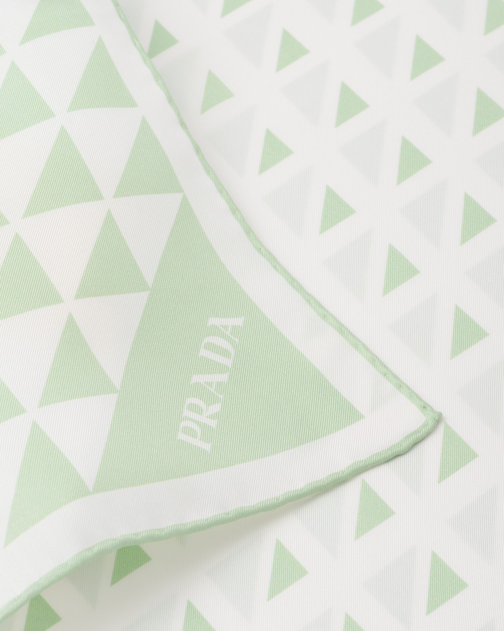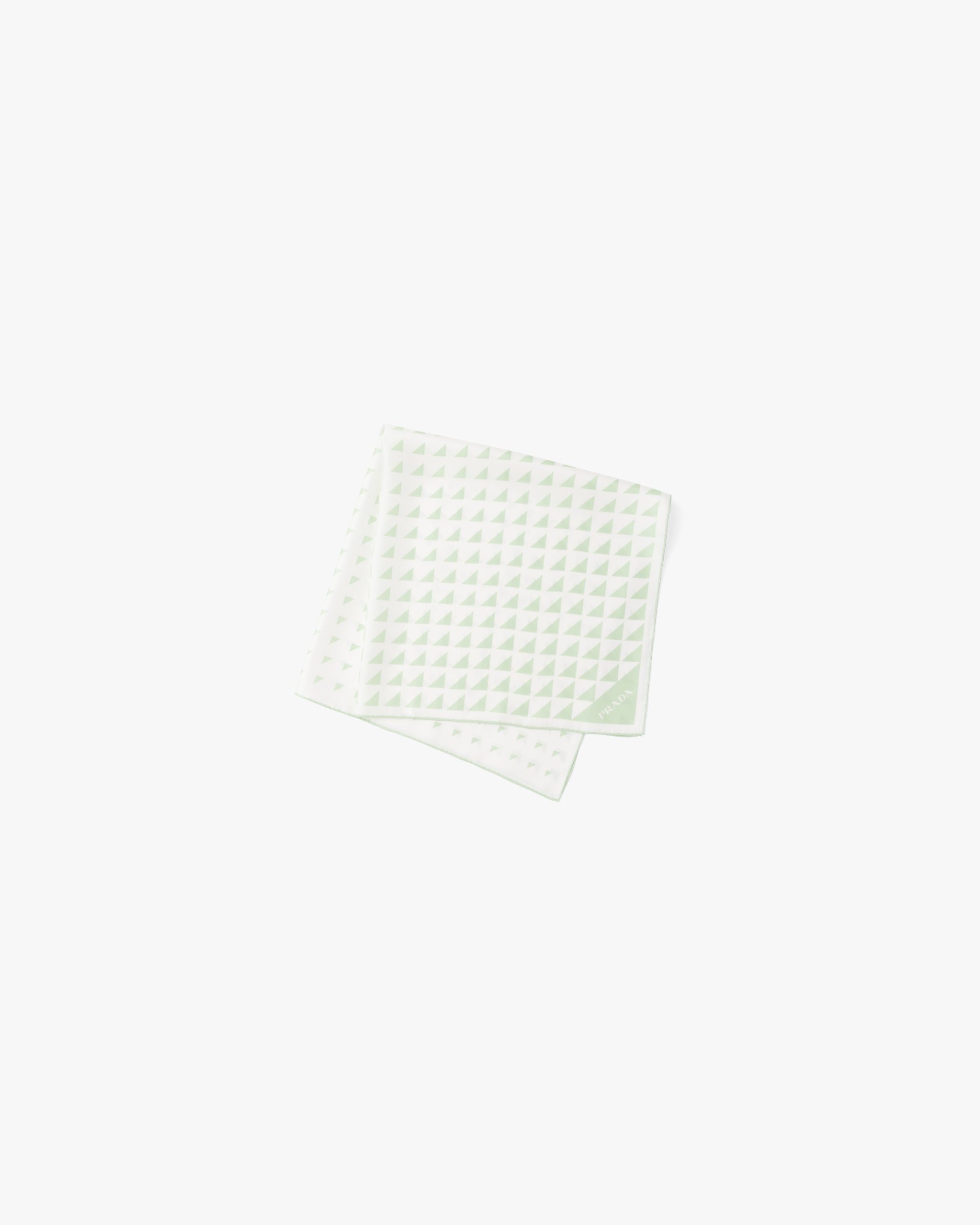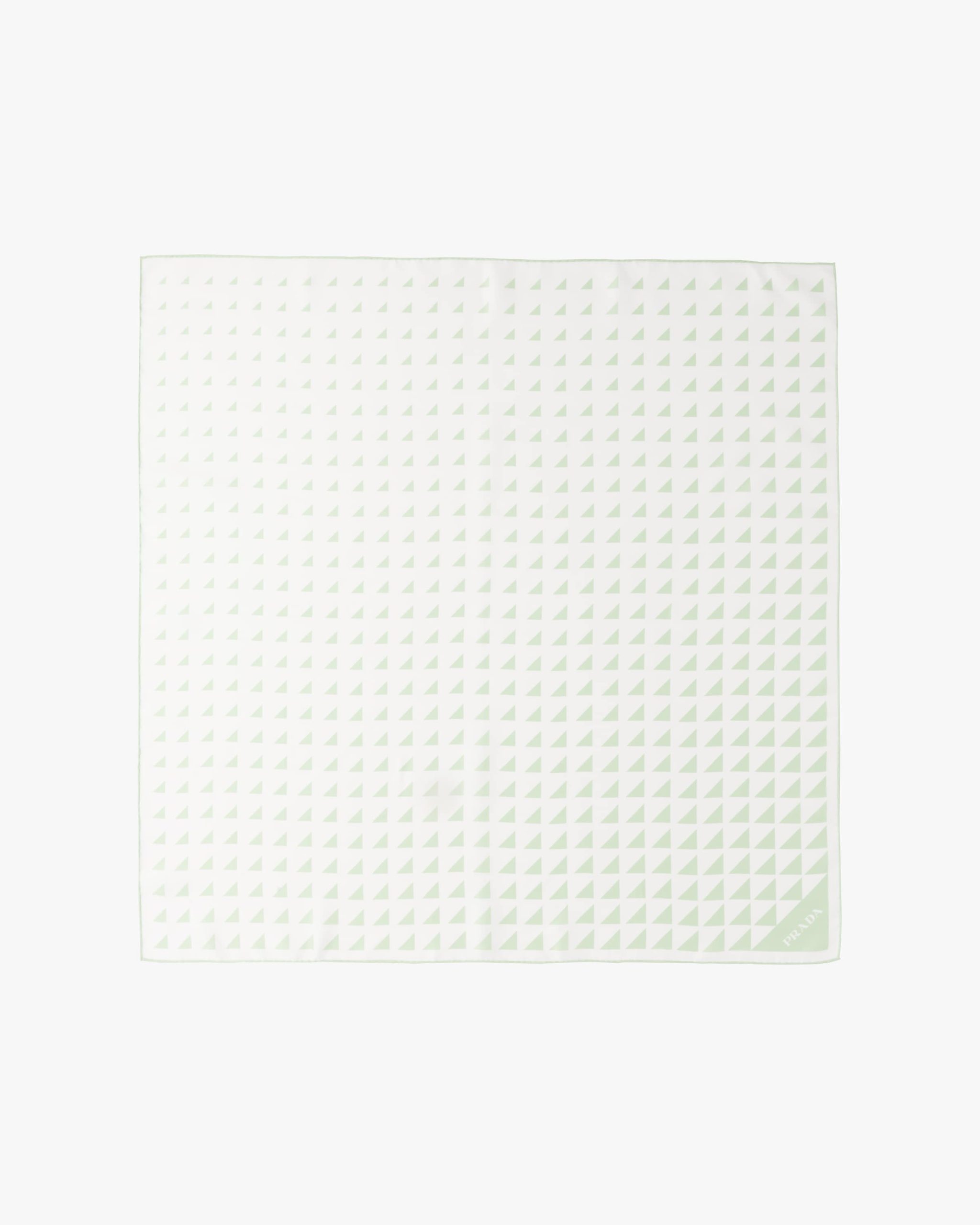The triangle, Prada’s iconic logo since 1913, is reimagined in always new ways and is found in the nuanced pattern on this twill scarf.