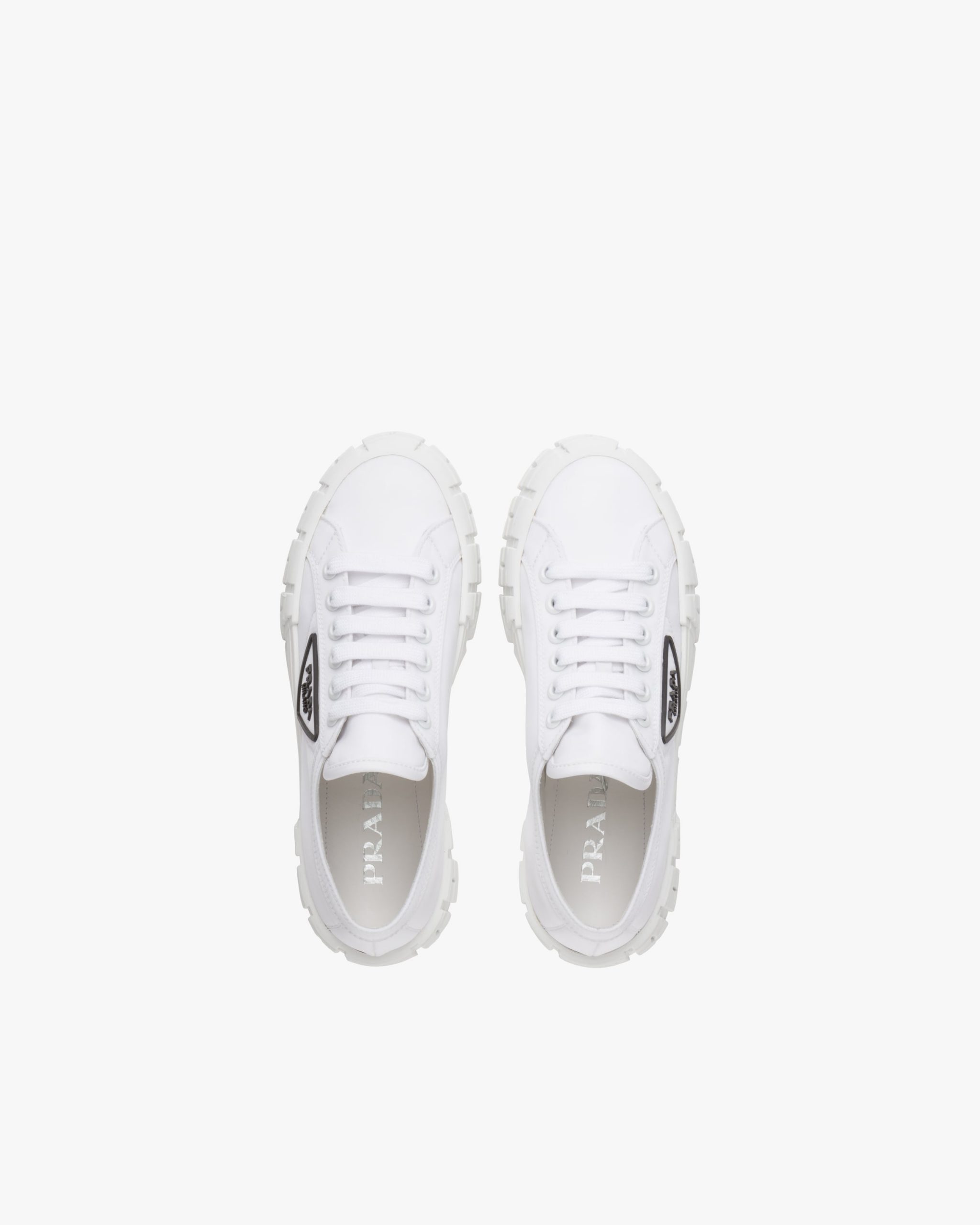 The rubber platform inspired by motocross tires defines the unusual design of these nylon gabardine sneakers. The logo triangle decorates the side of the shoe.