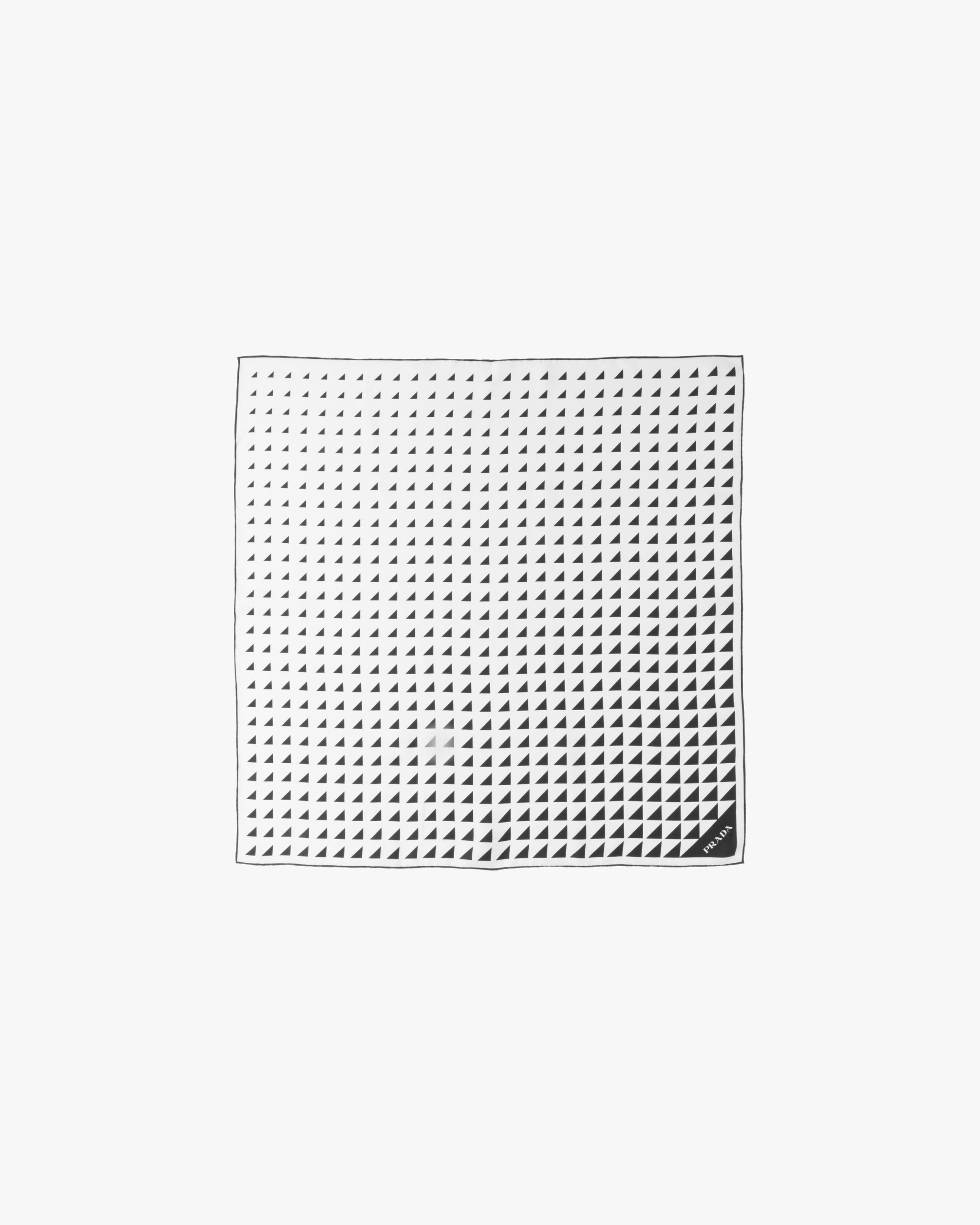 The triangle, Prada’s iconic logo since 1913, is reimagined in always new ways and is found in the nuanced pattern on this twill scarf.
