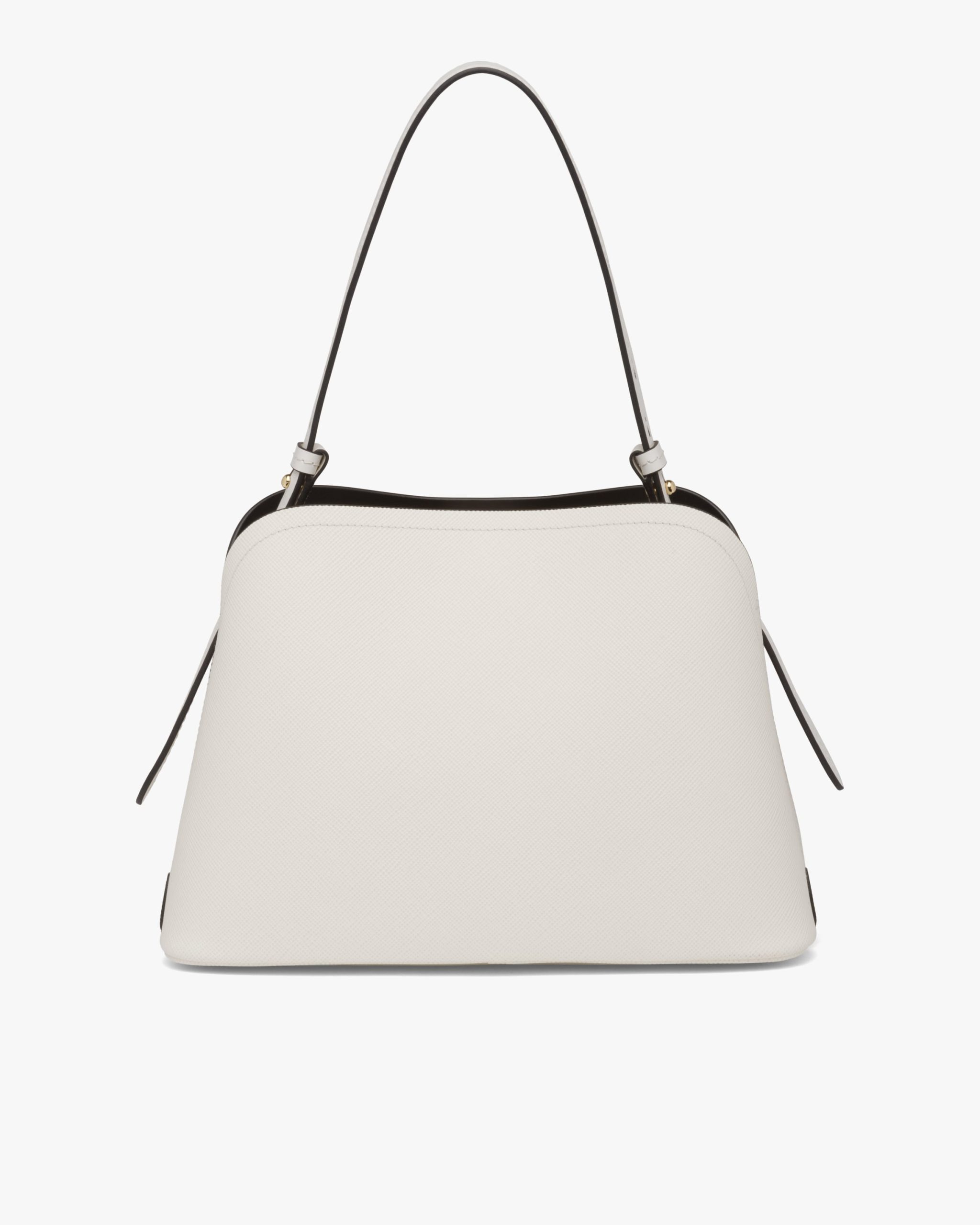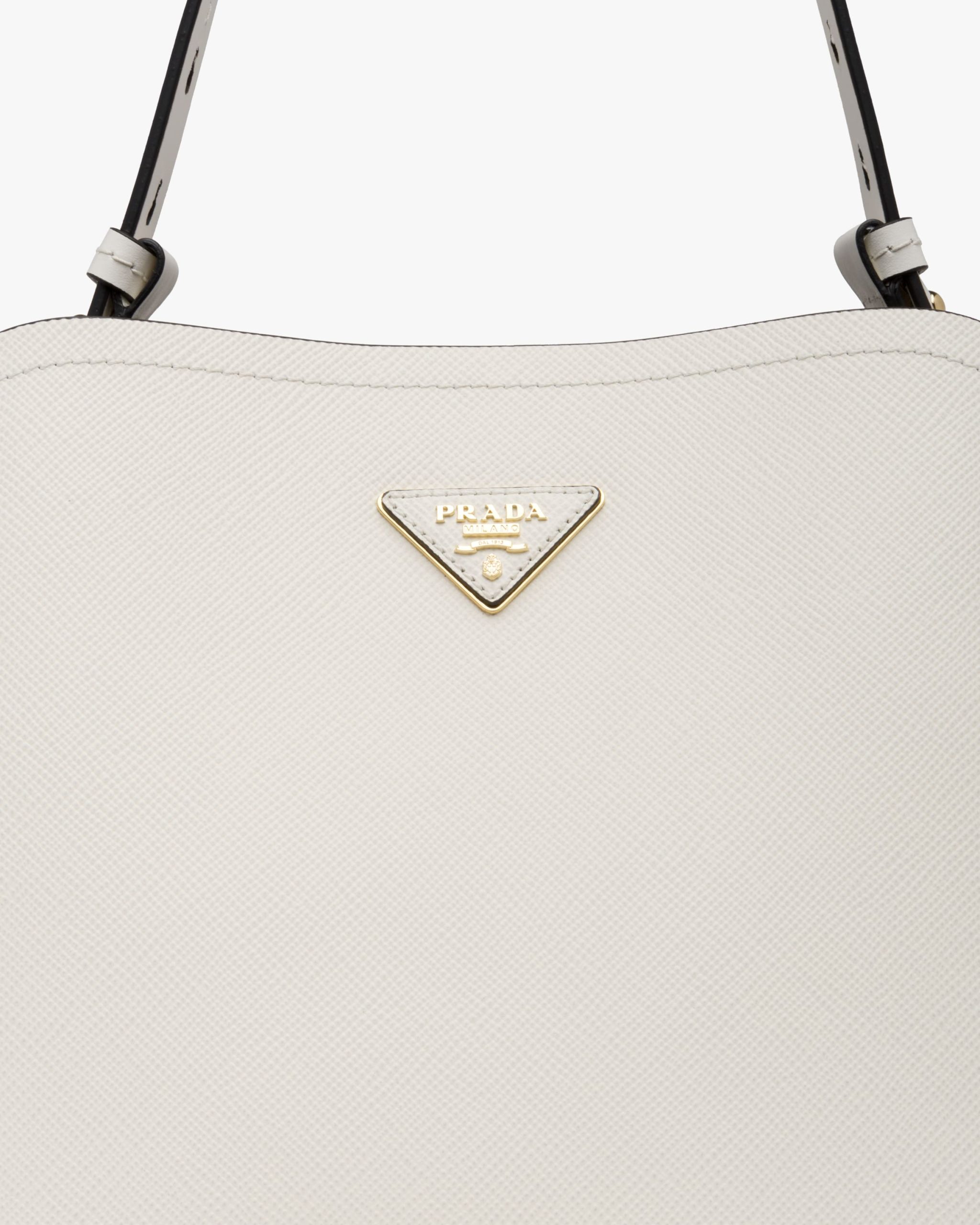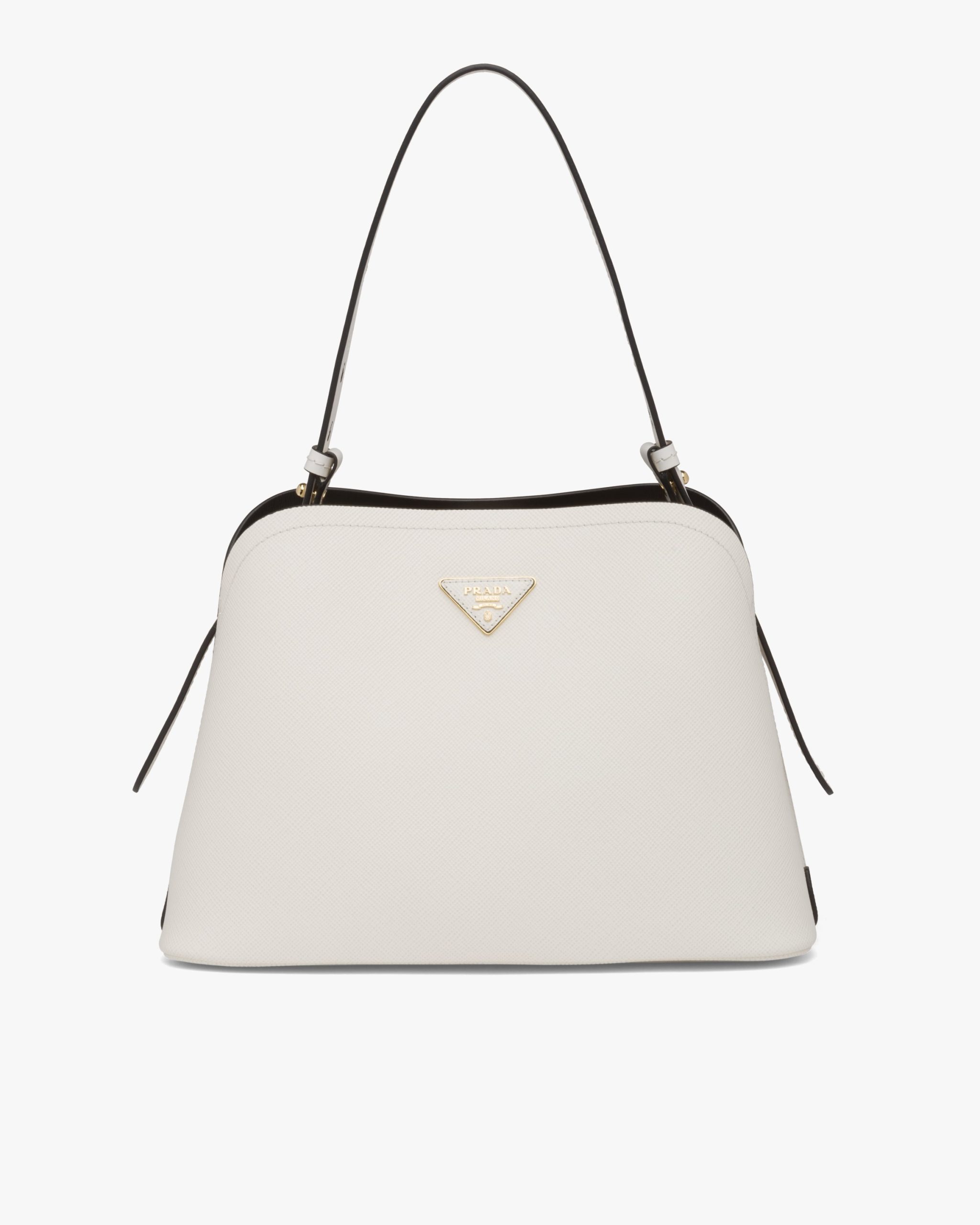 The Prada Matin?e bag in Saffiano leather stands out for its elegant silhouette. The bag has a leather shoulder strap.