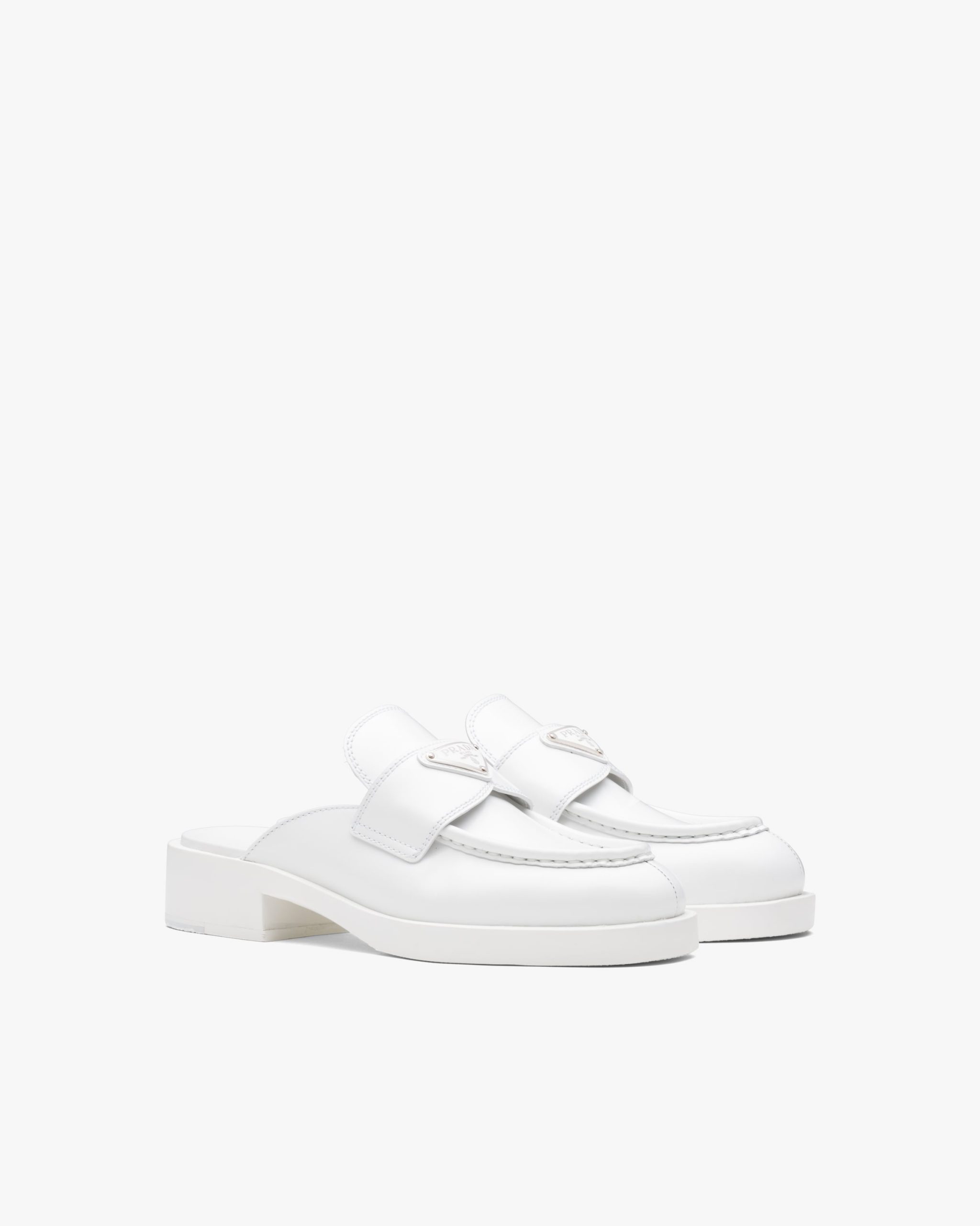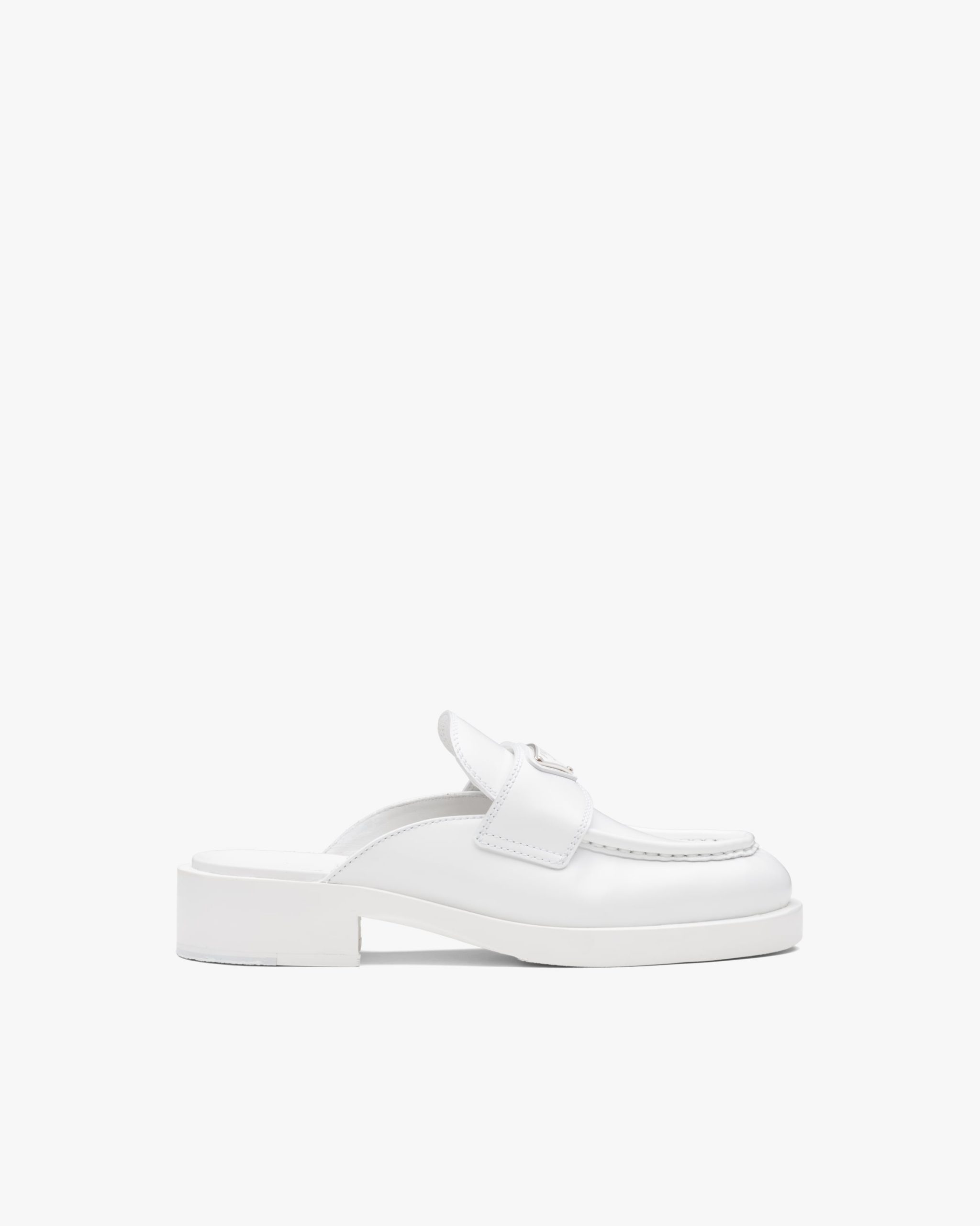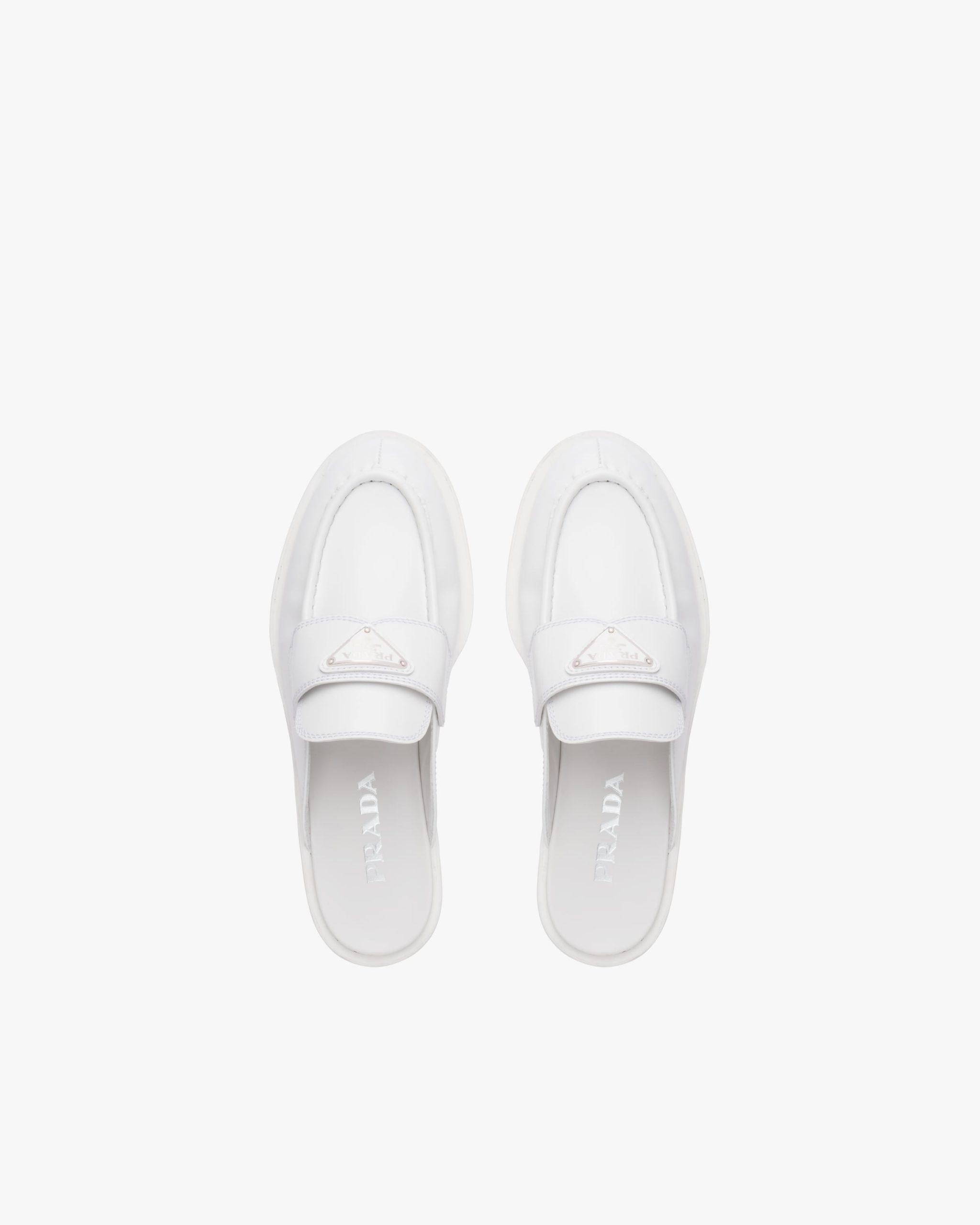 Brushed leather, traditionally used for classic fine footwear, has been reinterpreted in Prada collectsions since the ’90s on unexpected designs for a hybrid result that reflects the duality of the brand.