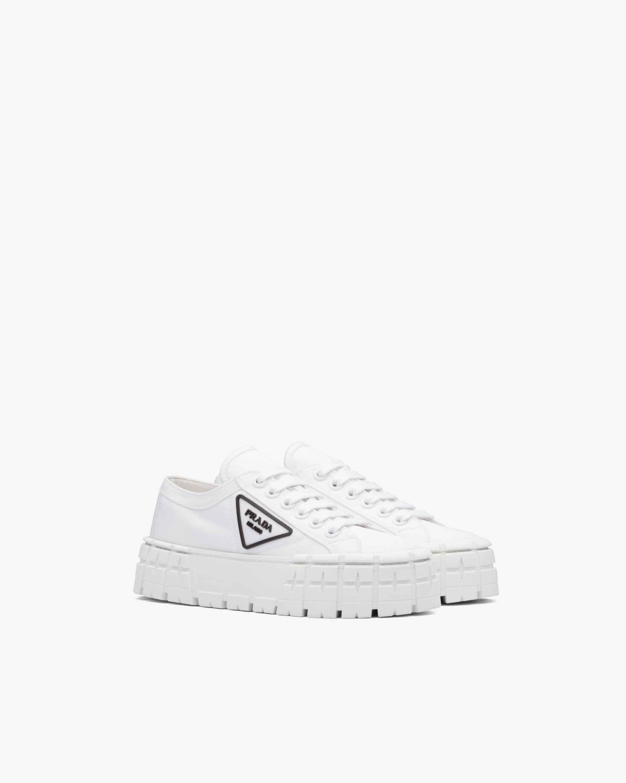 An innovative design with a retro soul defines these Double Wheel sneakers. A chunky textured sole is combined with the most classic gabardine upper featuring the rubber triangle logo.