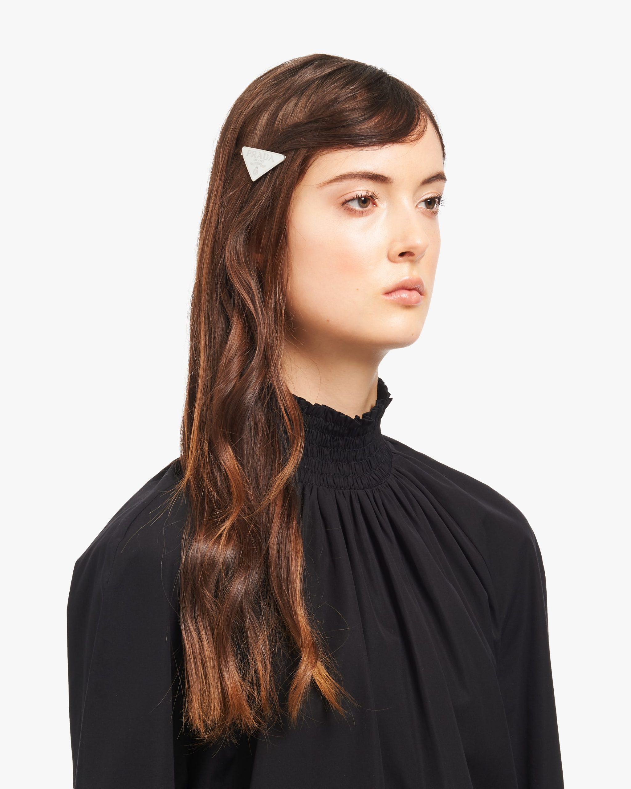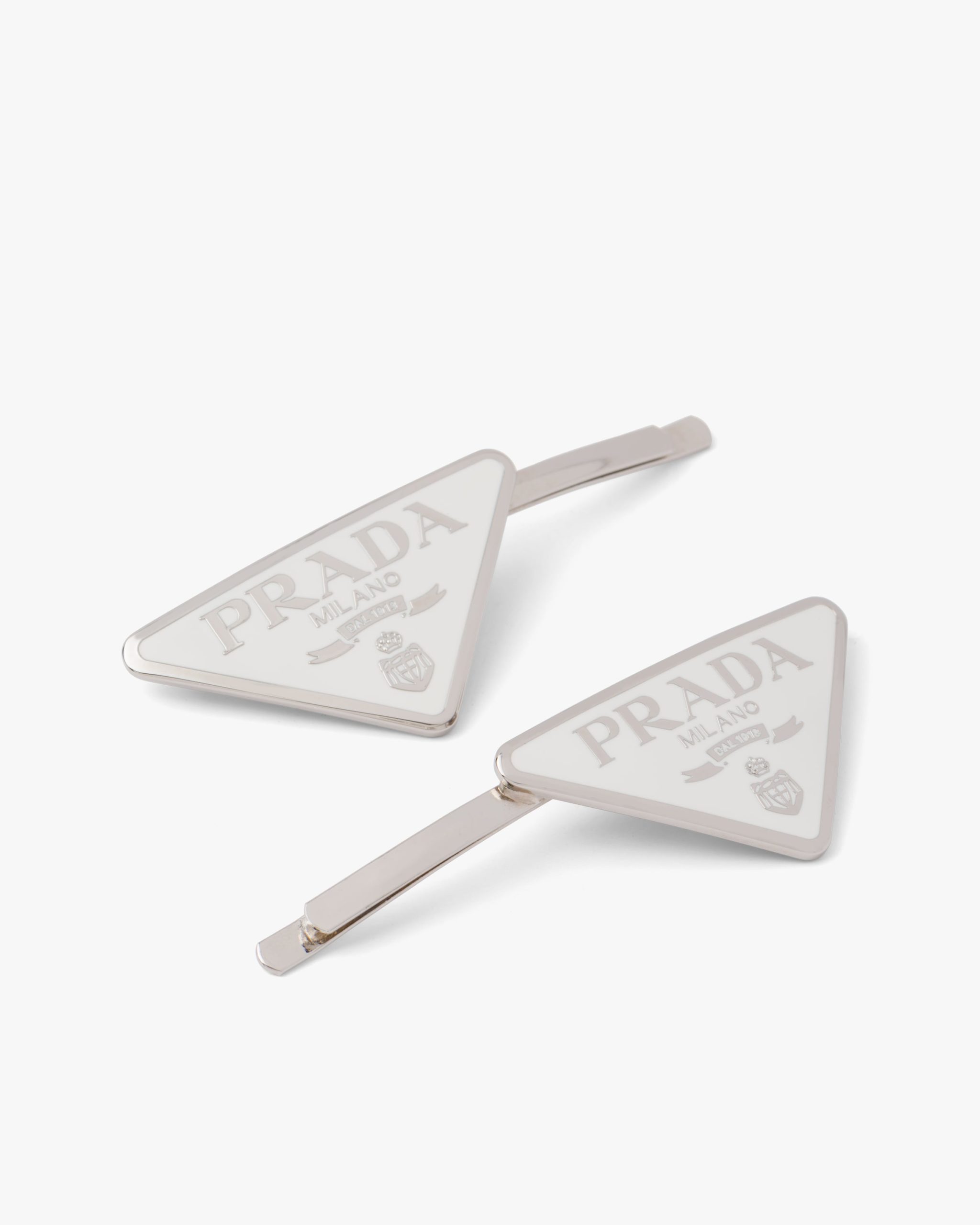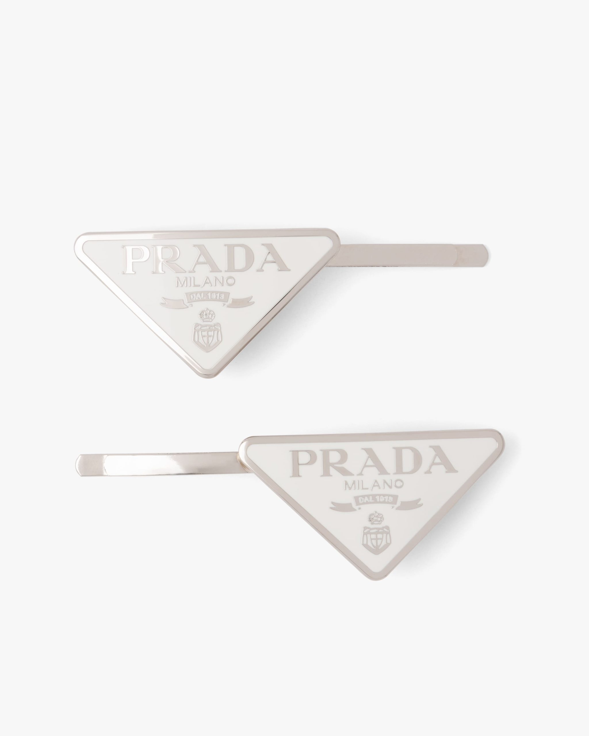 Iconic and sleek, the triangle logo is the protagonist of a new line of jewelry with modern allure. Prada’s historic symbol decorated with enamel defines this pair of clips.