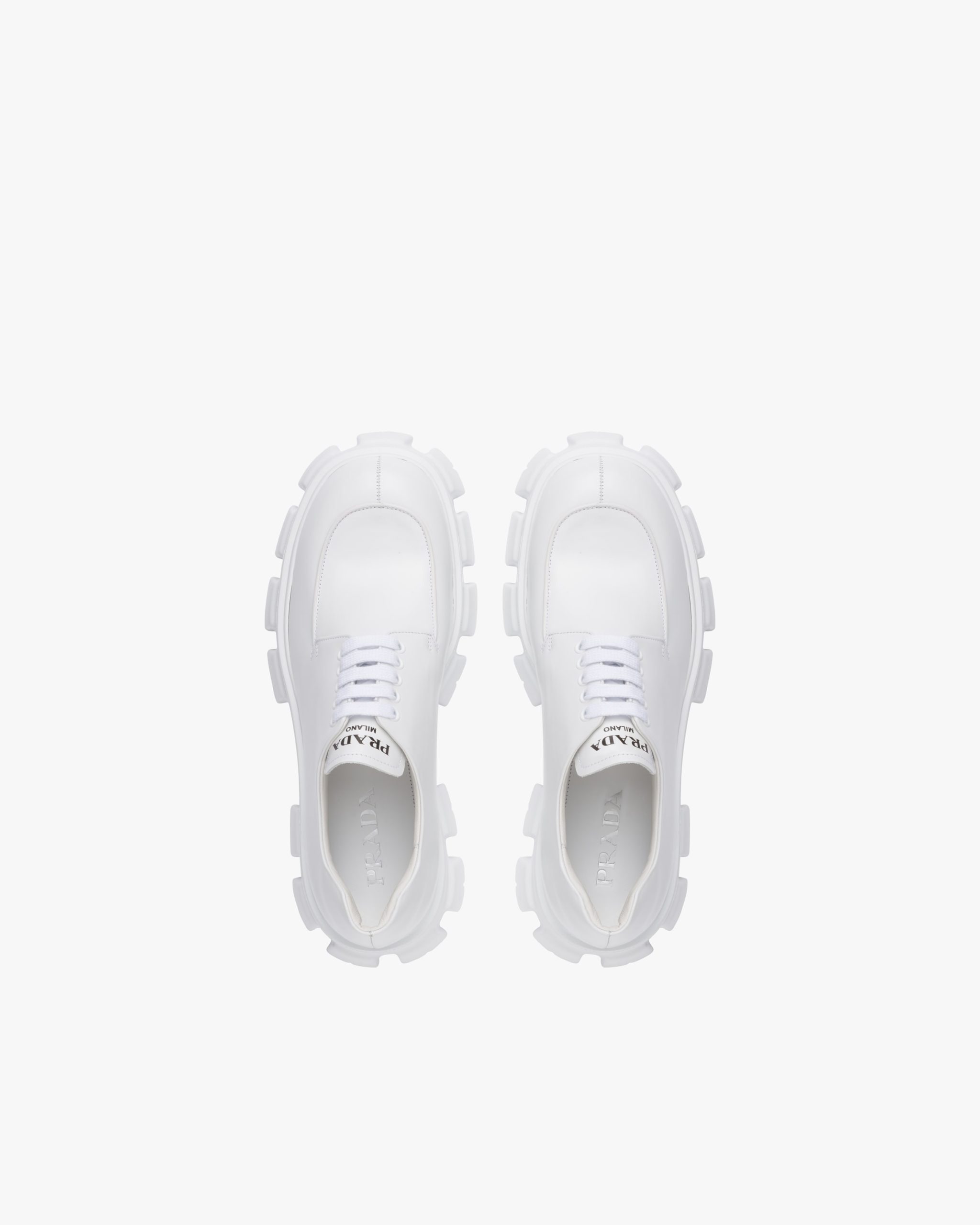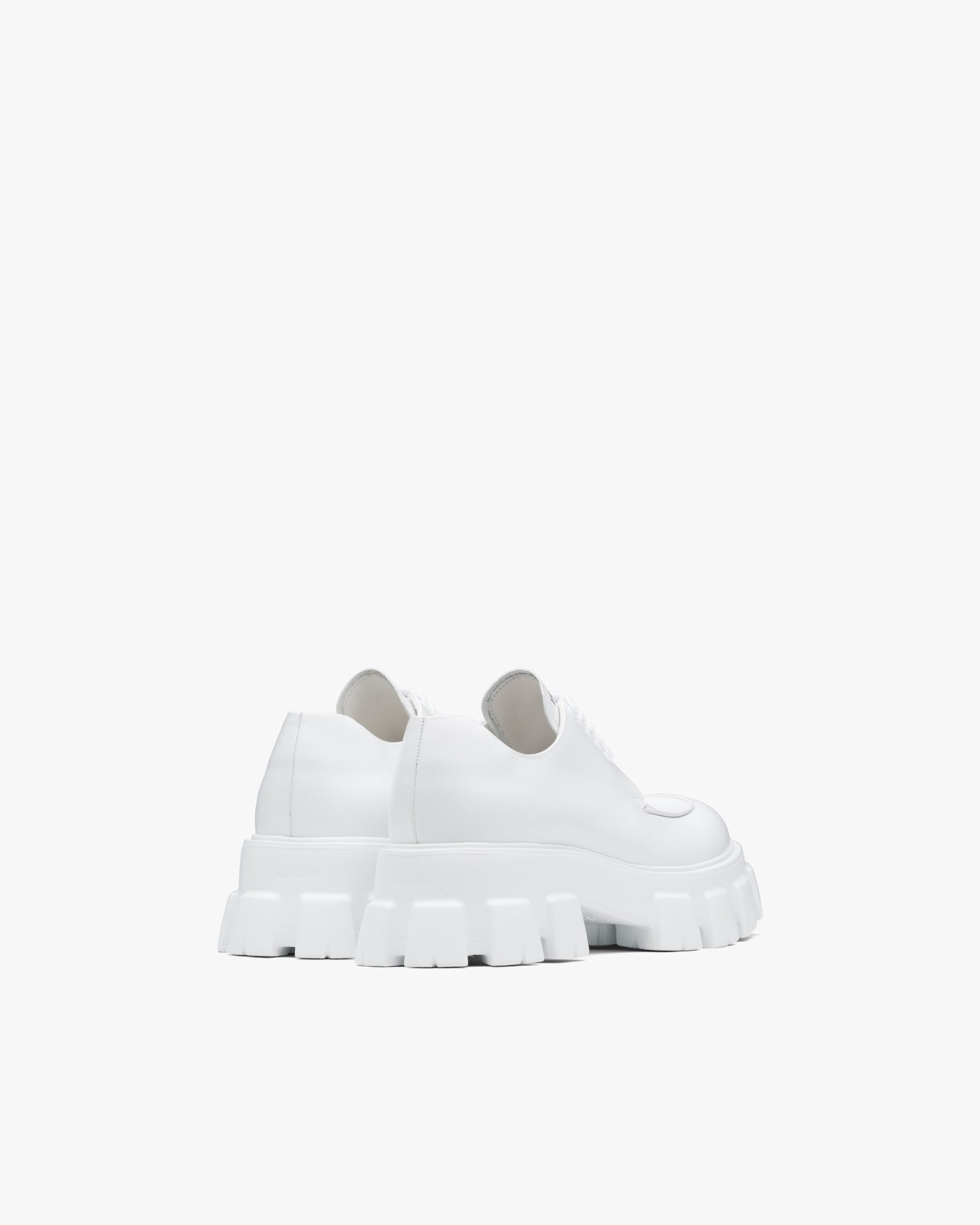 Named after its maxi rubber sole, this shoe is an expression of a timeless design, monolithic and unique for its research, innovation and style. The leather upper of these lace-ups, inspired by formal footwear for men, creates a dialog with the lines of the sole inspired by the uniform, combining concepts like protection and modernism with the brand’s emblematic elegance.