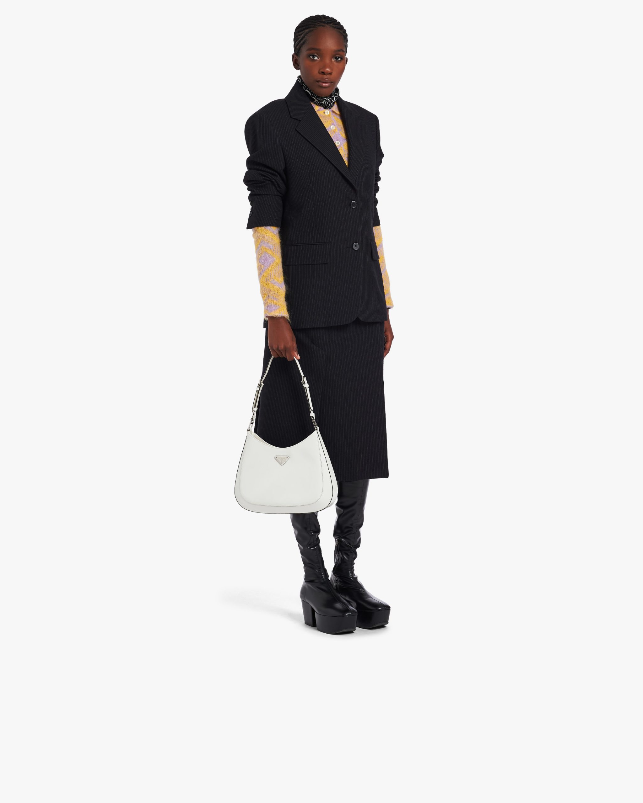 White N Prada Cleo brushed leather shoulder bag