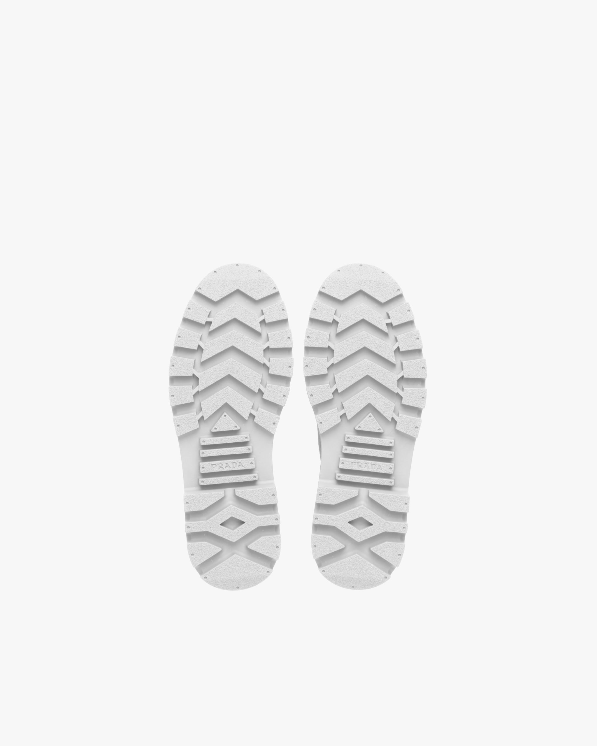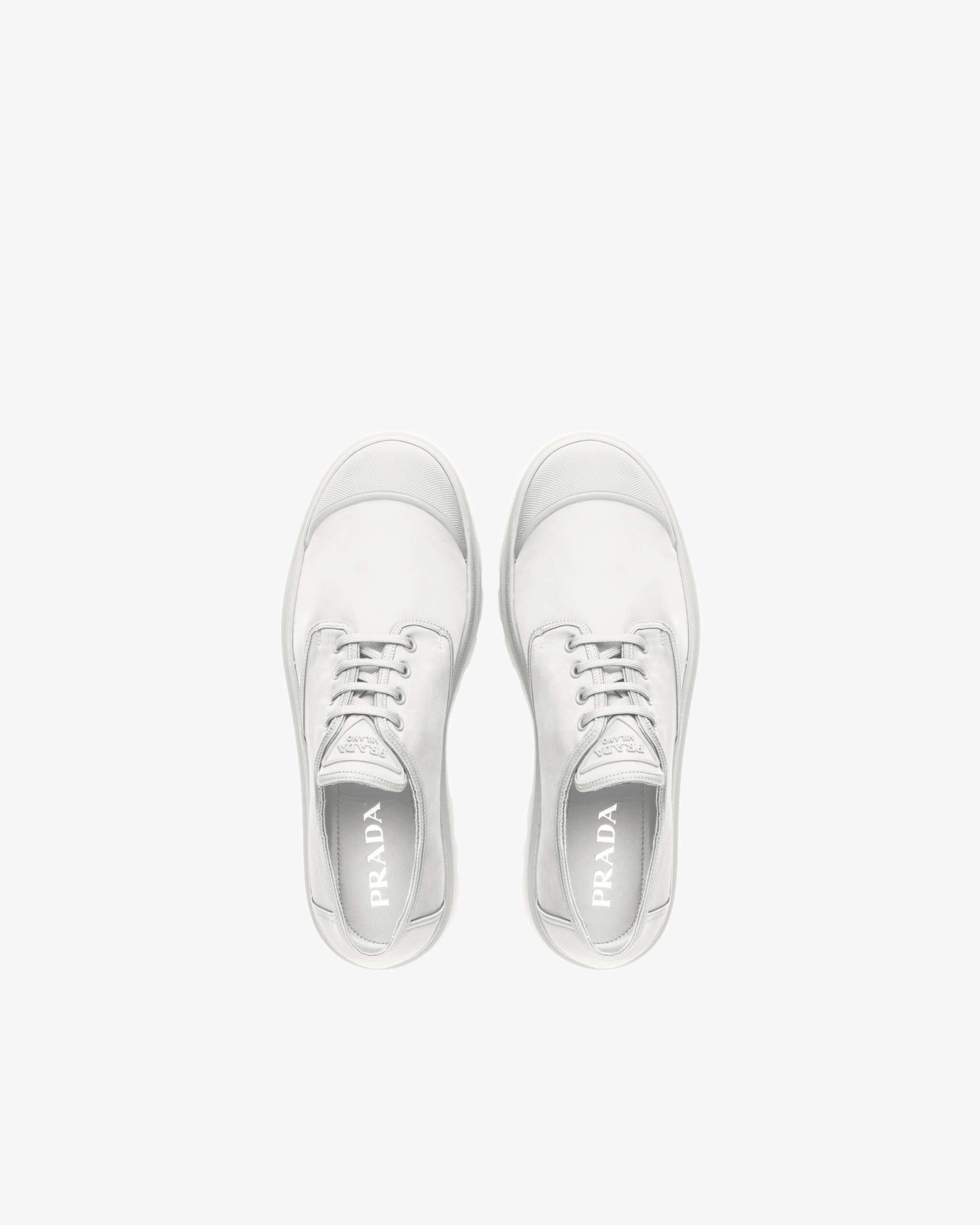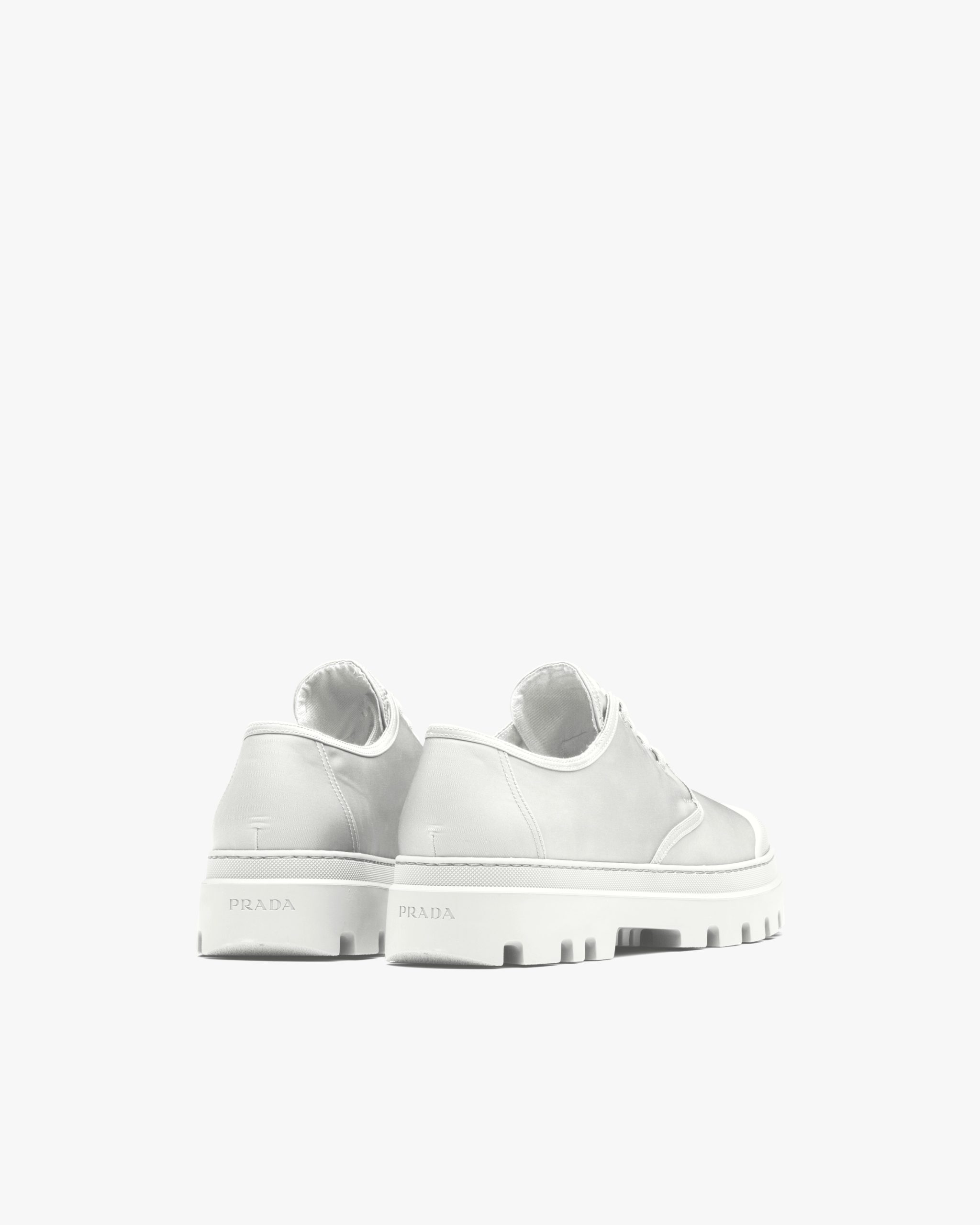 The lace-up Derby shoe is given a contemporary update with a play of different volumes and materials. The distinctive rubber toe cap contrasts with the nylon upper decorated with the triangle logo on the tongue. A thick rubber tread sole completes the shoe.