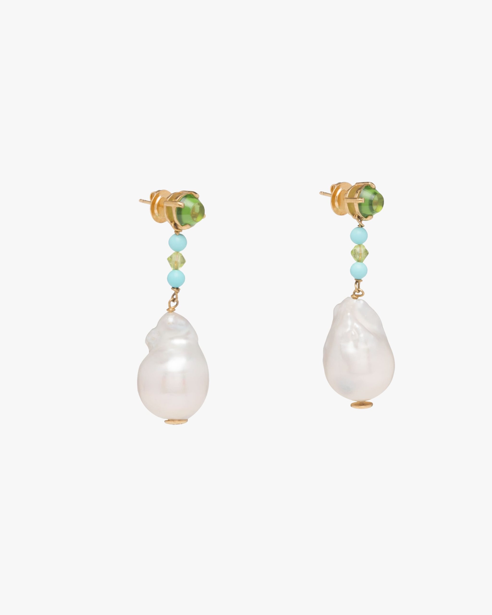 White/peridot Prada Fine Jewellery gold and pearl earrings