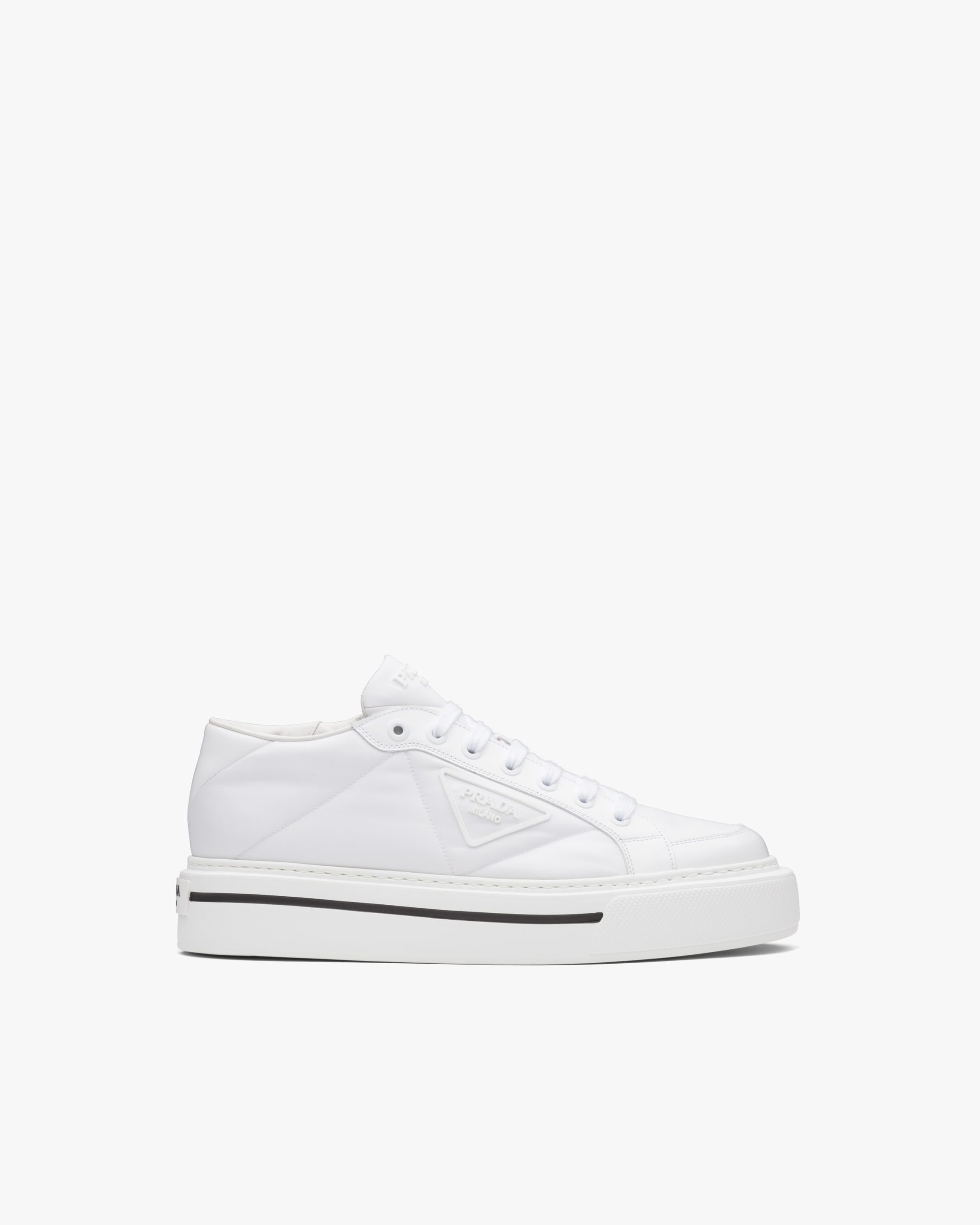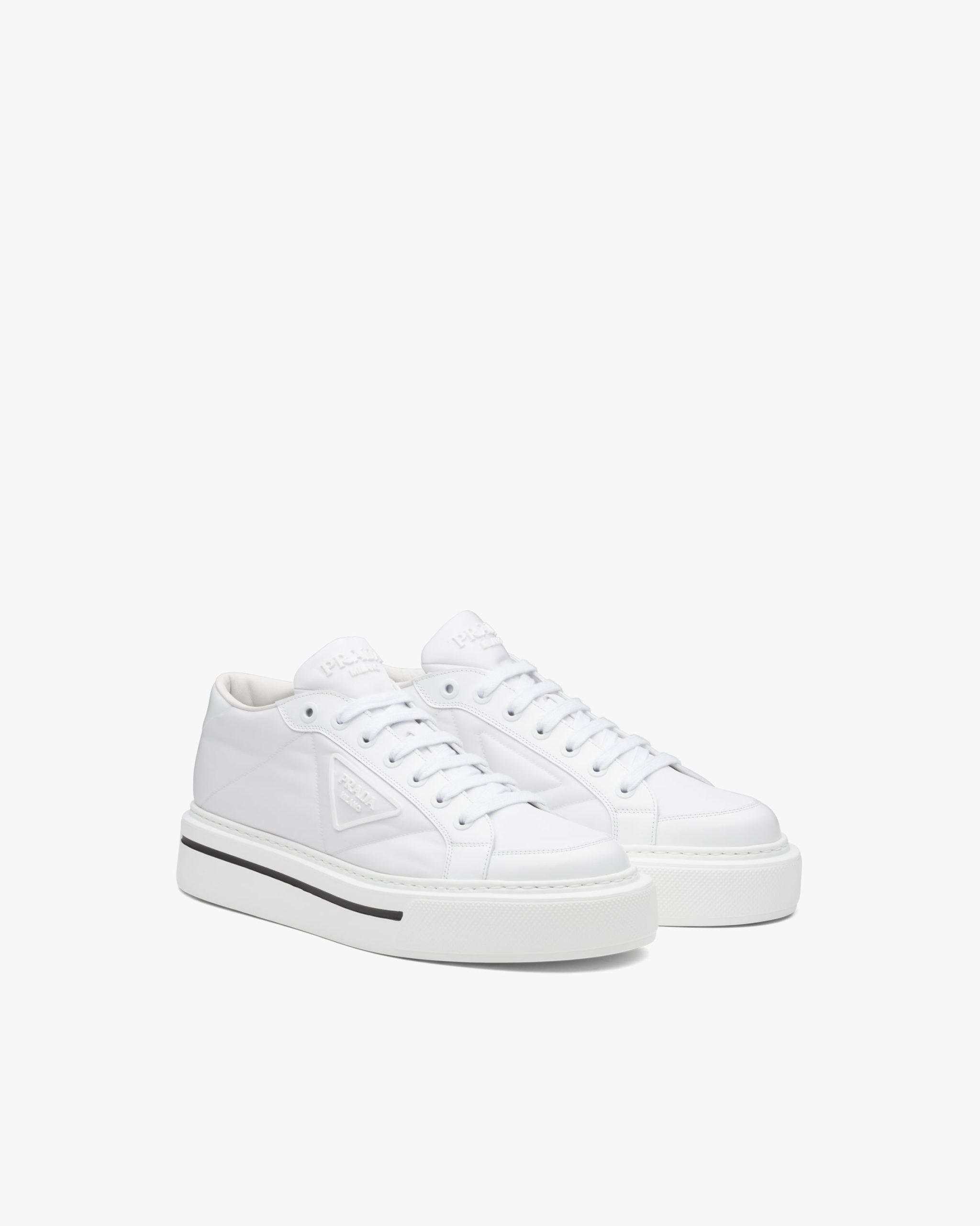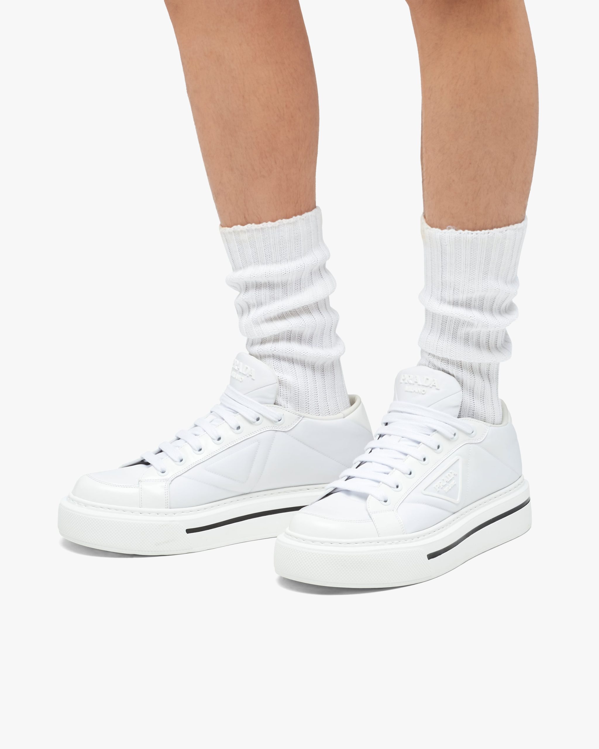White Prada Macro Re-Nylon and brushed leather sneakers