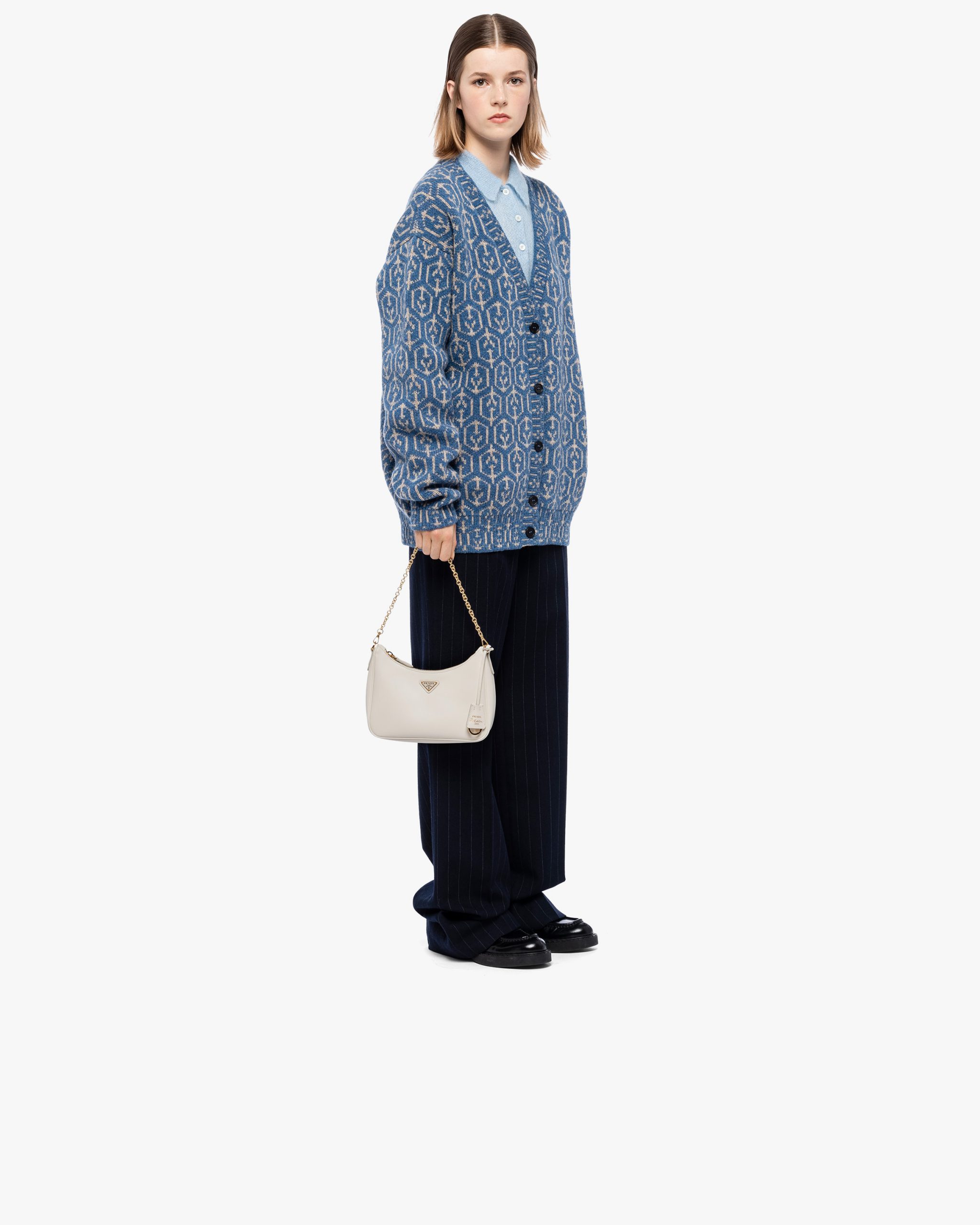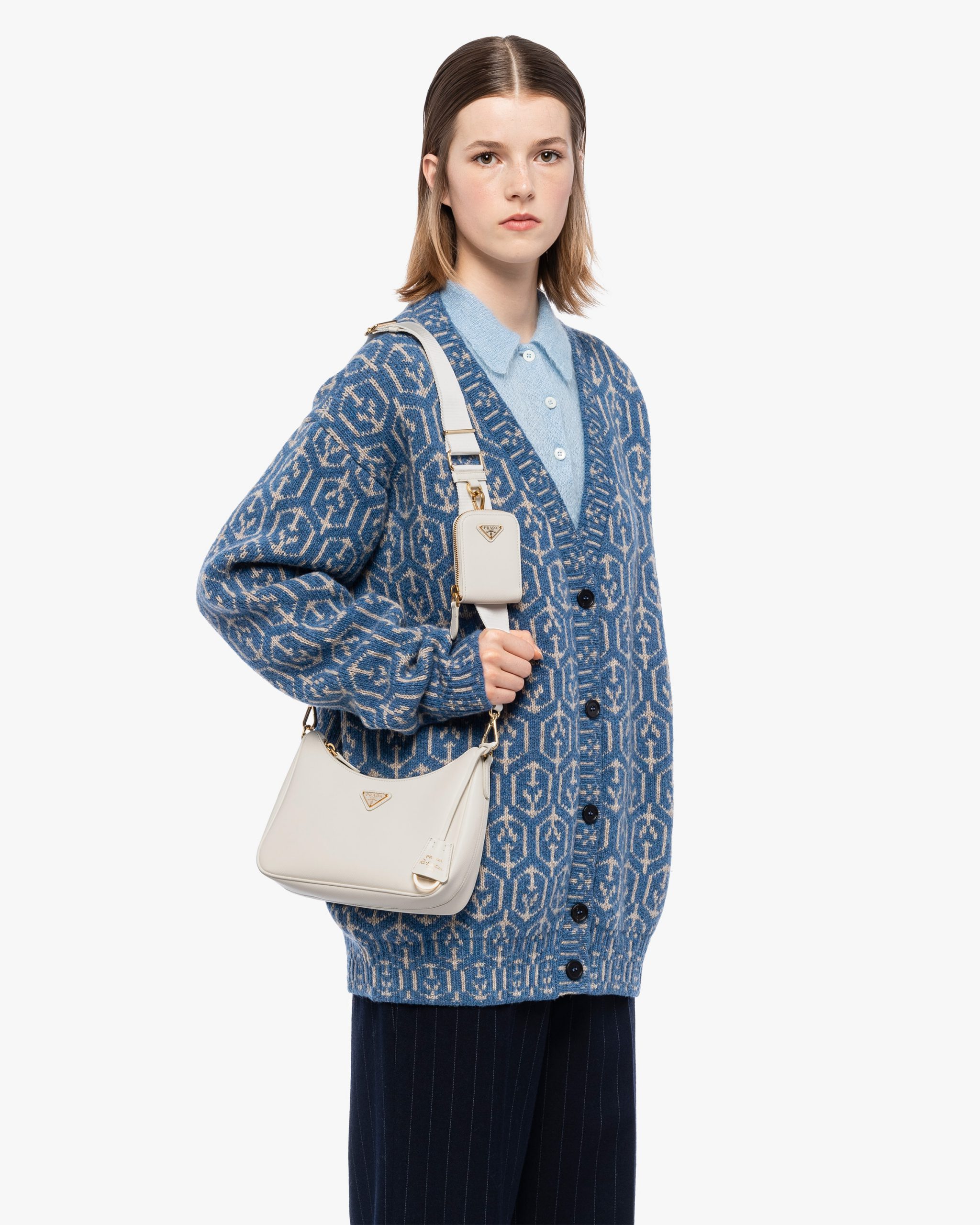 An iconic silhouette with sophisticated details that enhance the design: Prada transforms the classic shoulder bag, reinterpreting it in Saffiano leather with a cross-hatch motif that is a hallmark of the brand. The accessory is completed by a removable leather pouch and Re-Edition keychain, making the bag unique and functional.