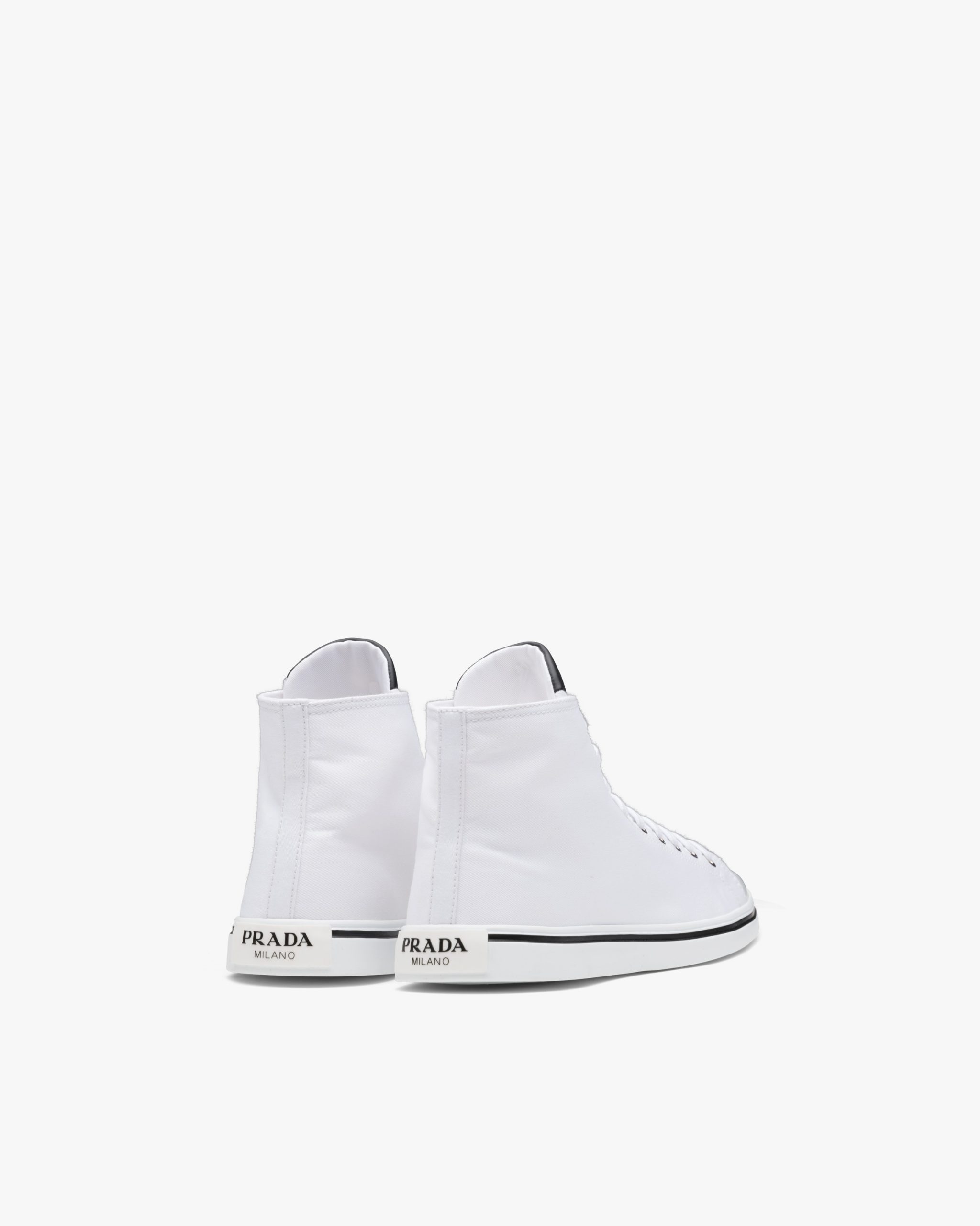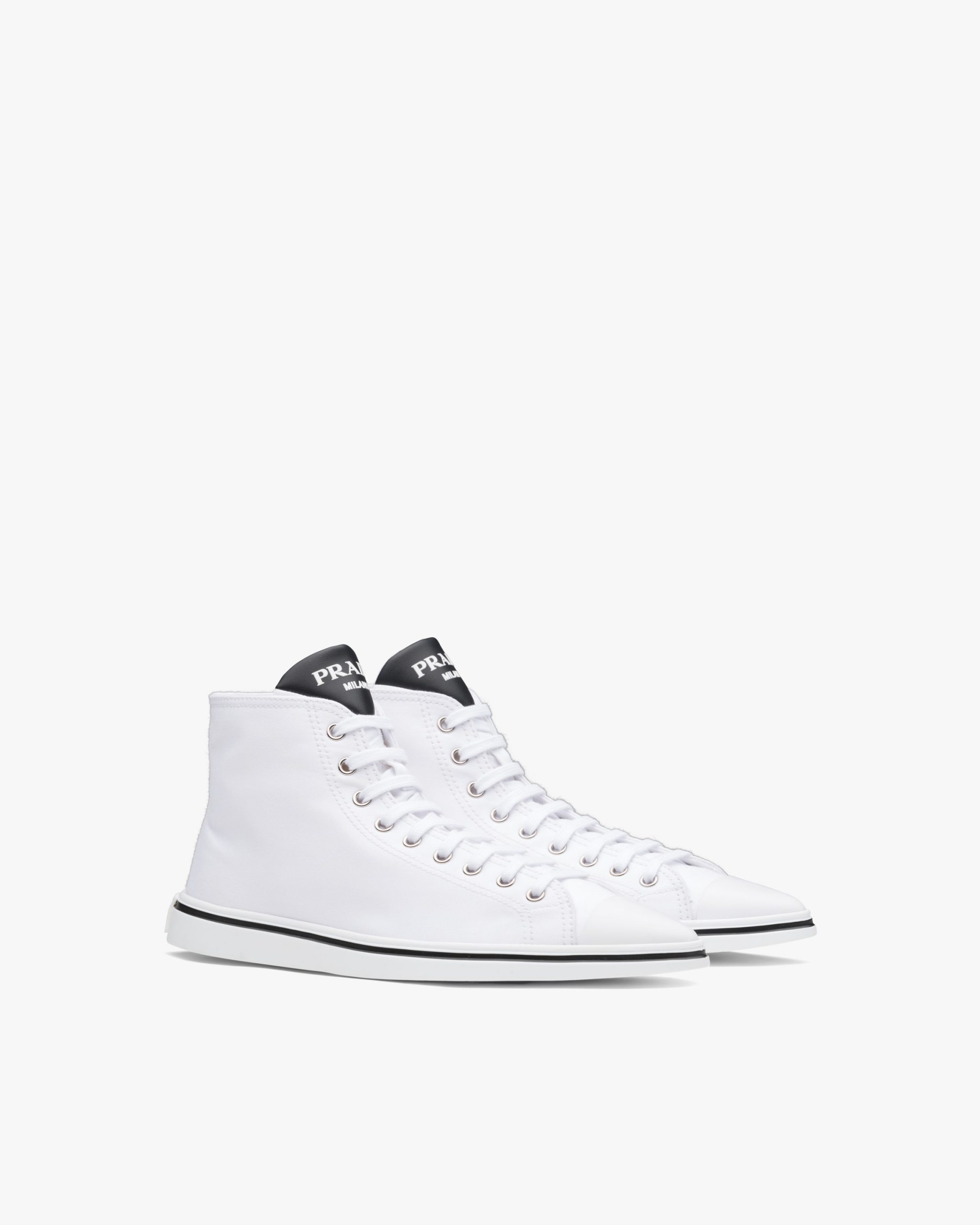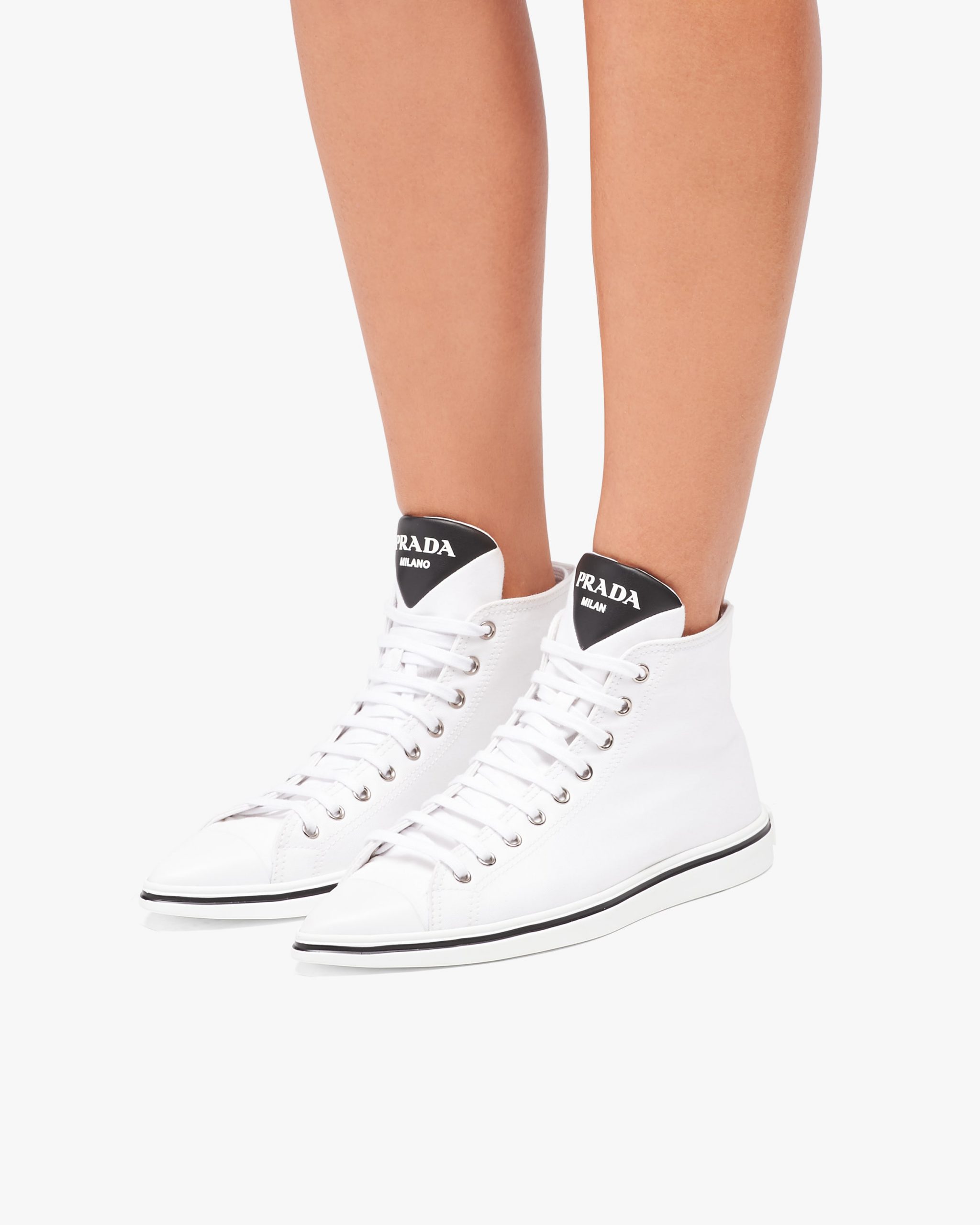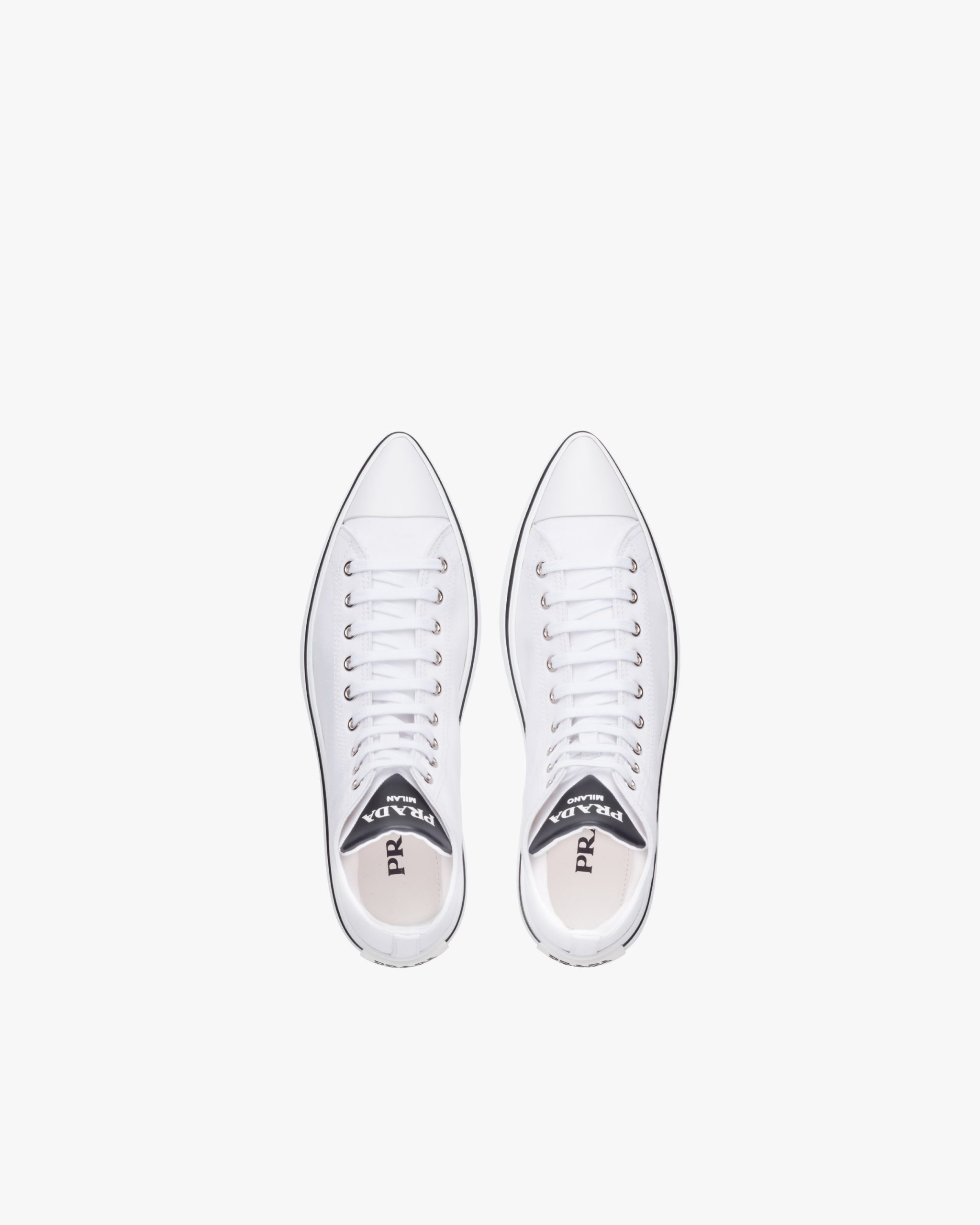 The sneaker is given a feminine twist in this version with a rubber toecap and tapered silhouette, with the Prada logo decorating the tongue.