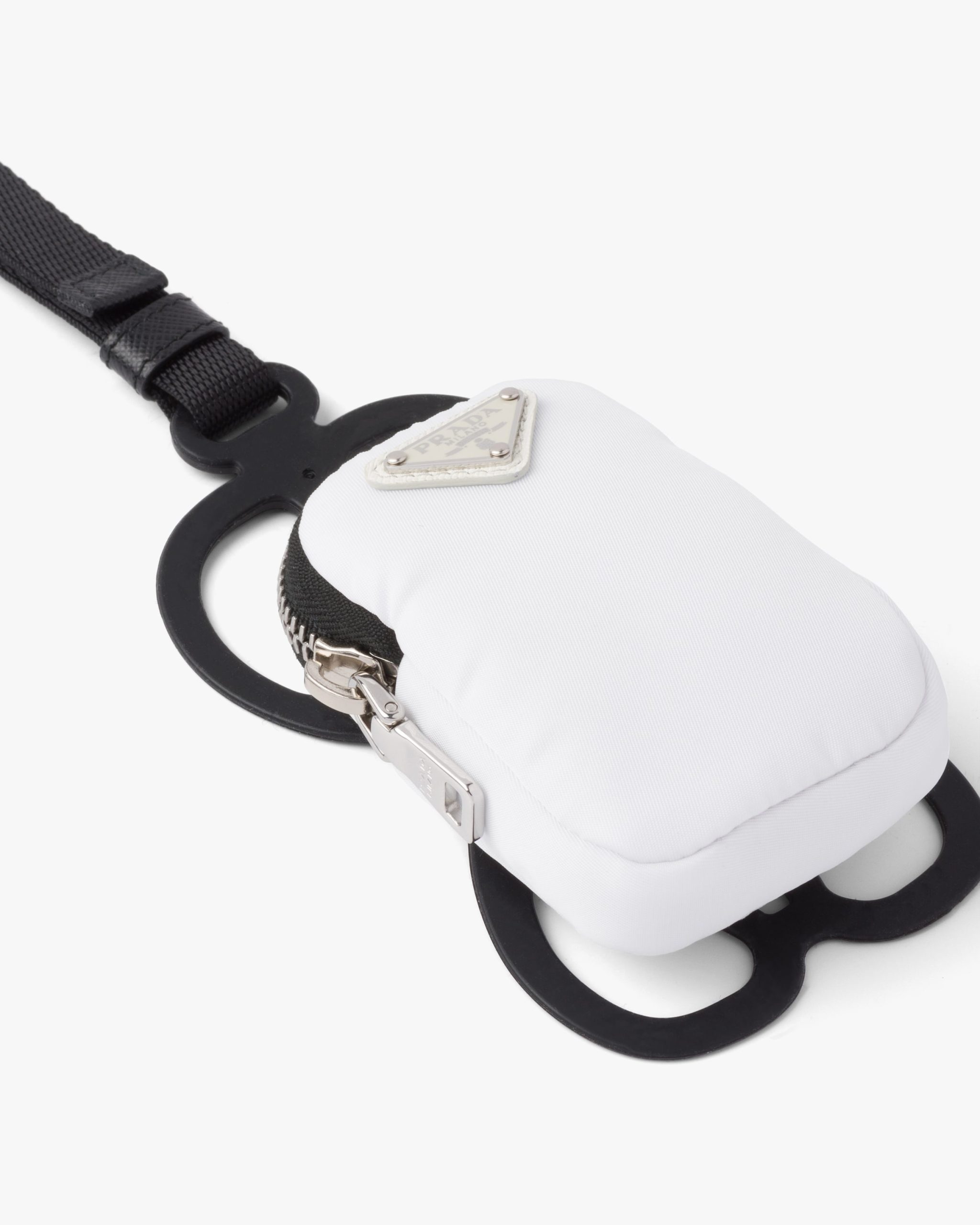 This smartphone case decorated with the brand’s iconic enamel triangle logo is made of Re-Nylon: regenerated nylon yarn (ECONYL?)produced from recycled, purified plastic trash collectsed in the ocean, fishing nets and textile waste fibers.