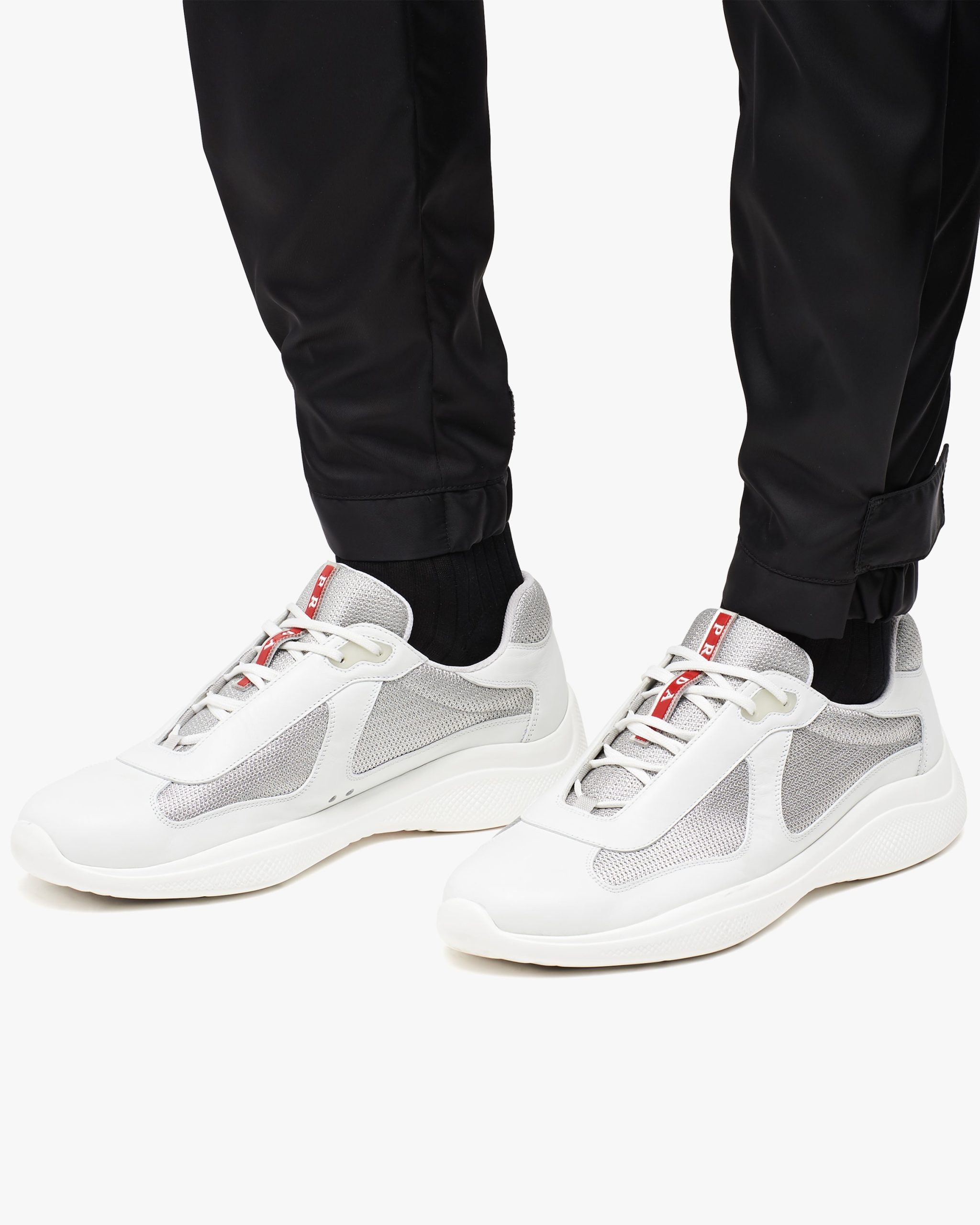 These iconic leather and technical fabric sneakers designed for the Luna Rossa crew have a sporty, contemporary design and restyled details and lines.