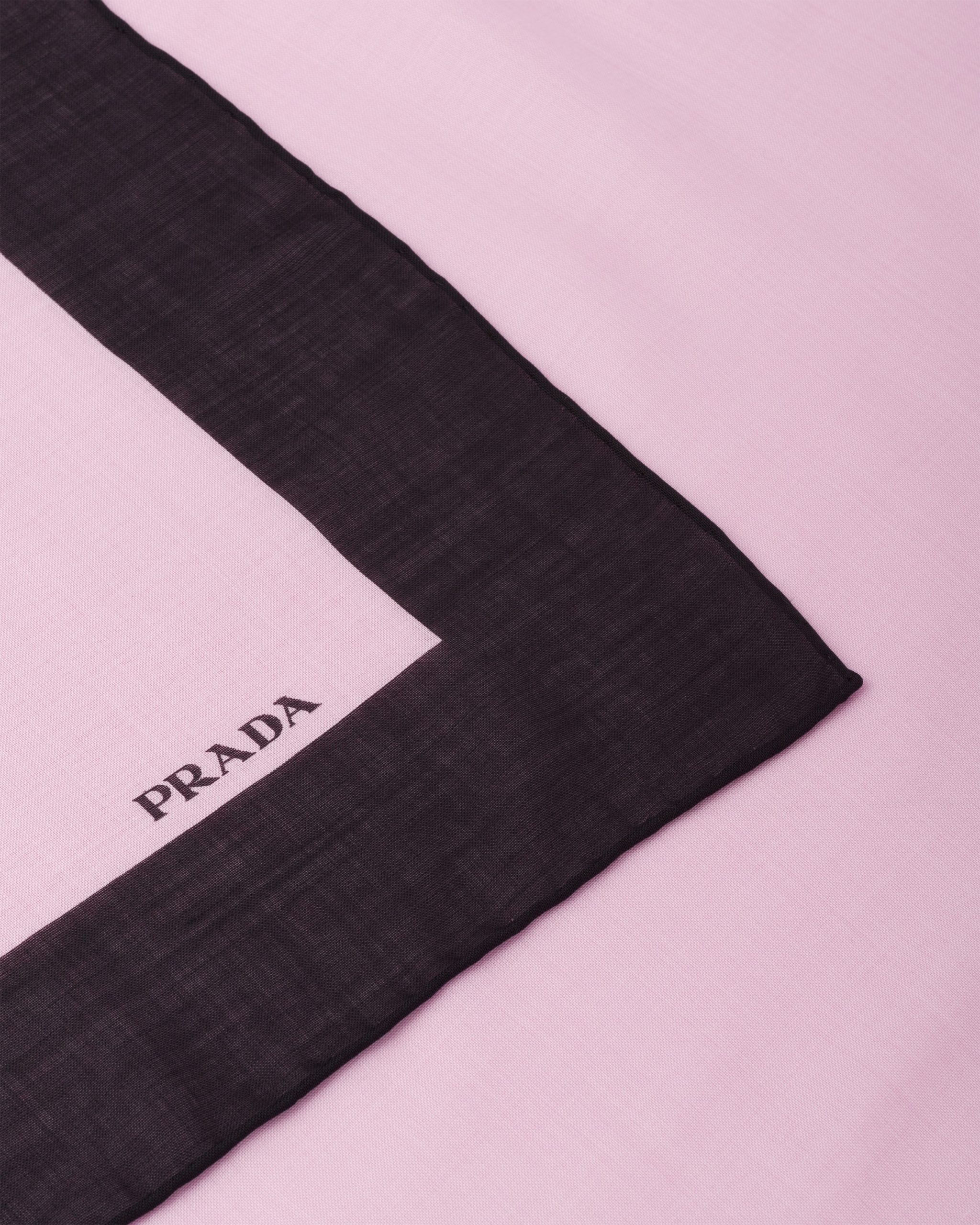 Sleek and timeless, this gauze scarf with great visual impact is characterized by the contrasting edge and printed Prada logo.
