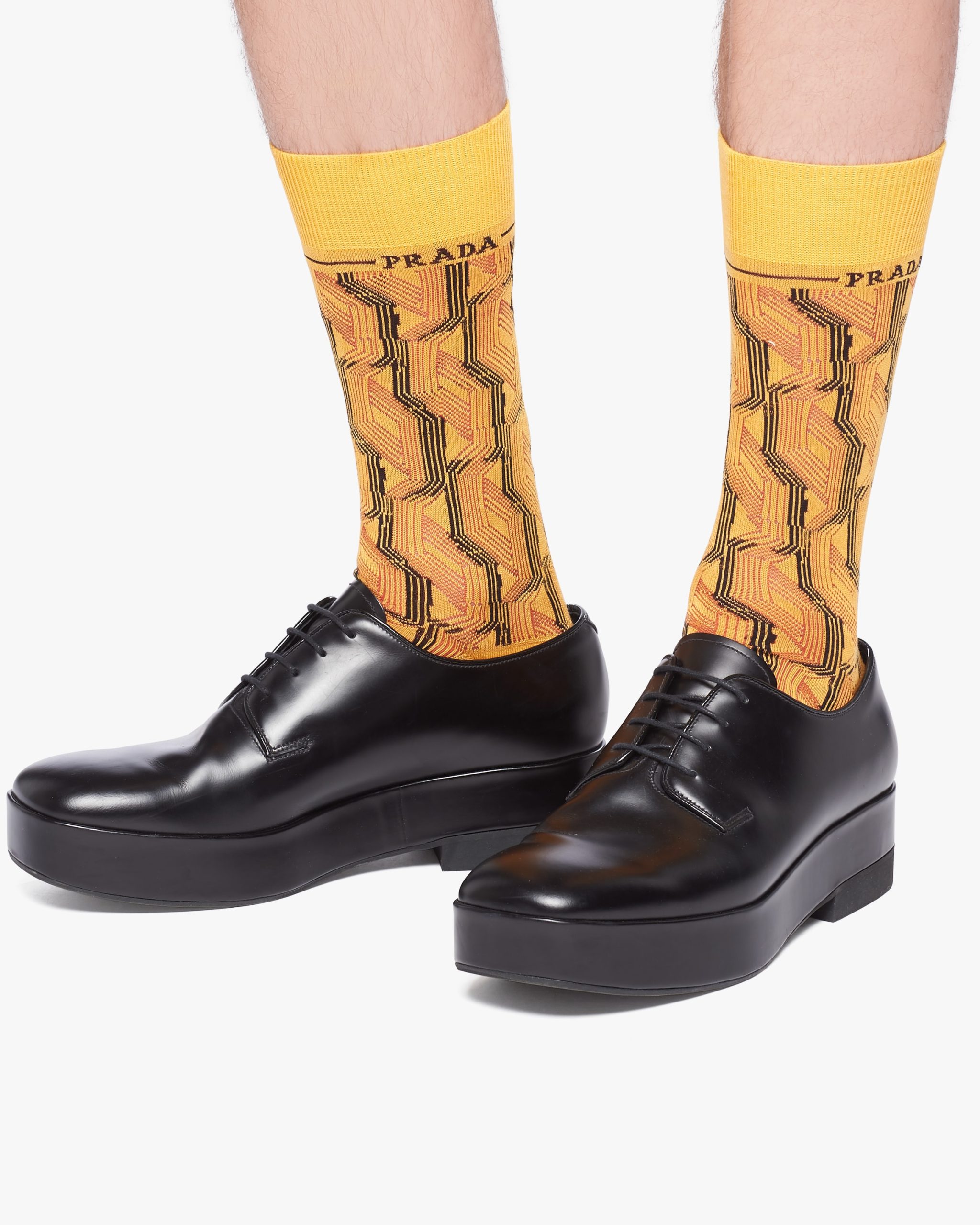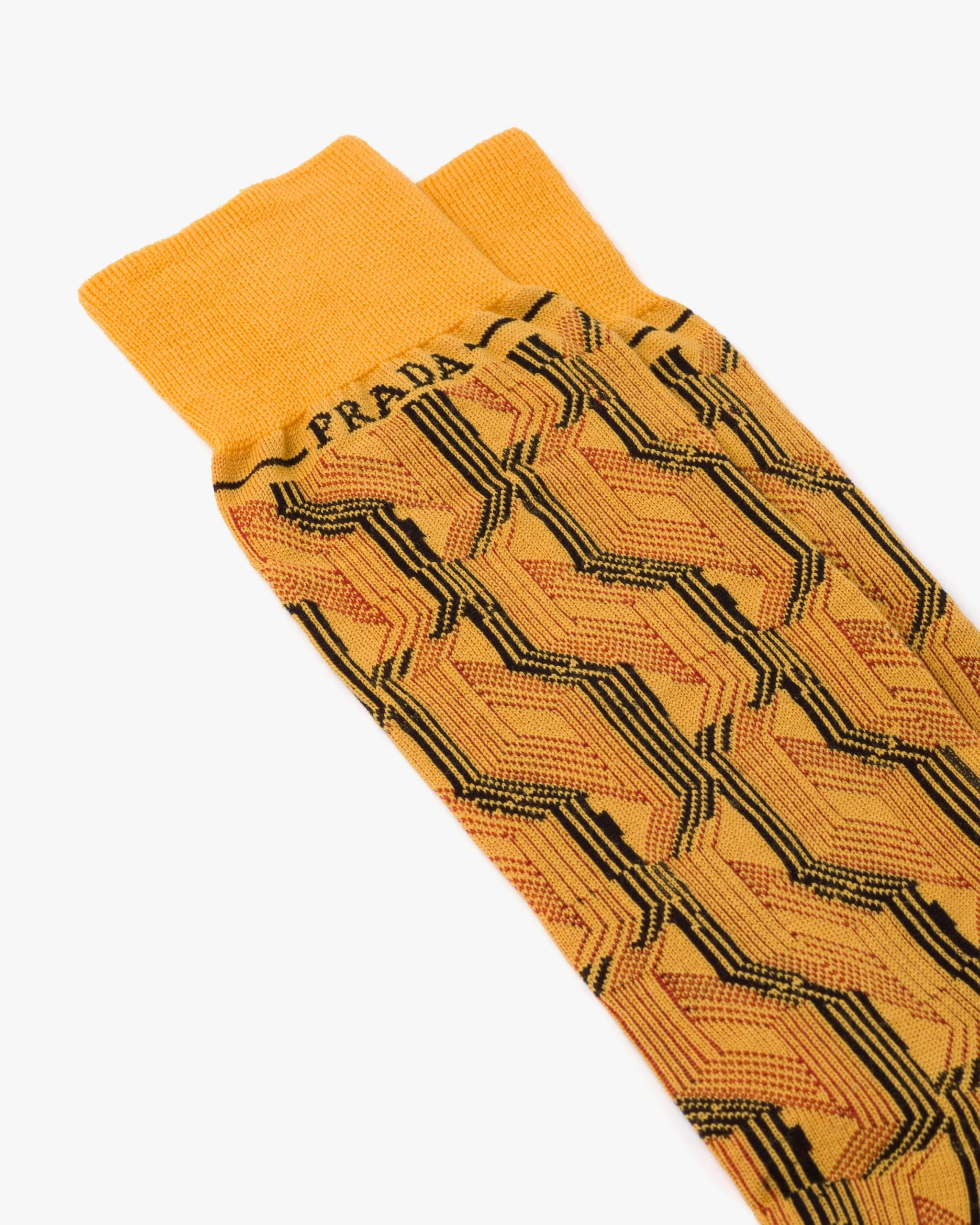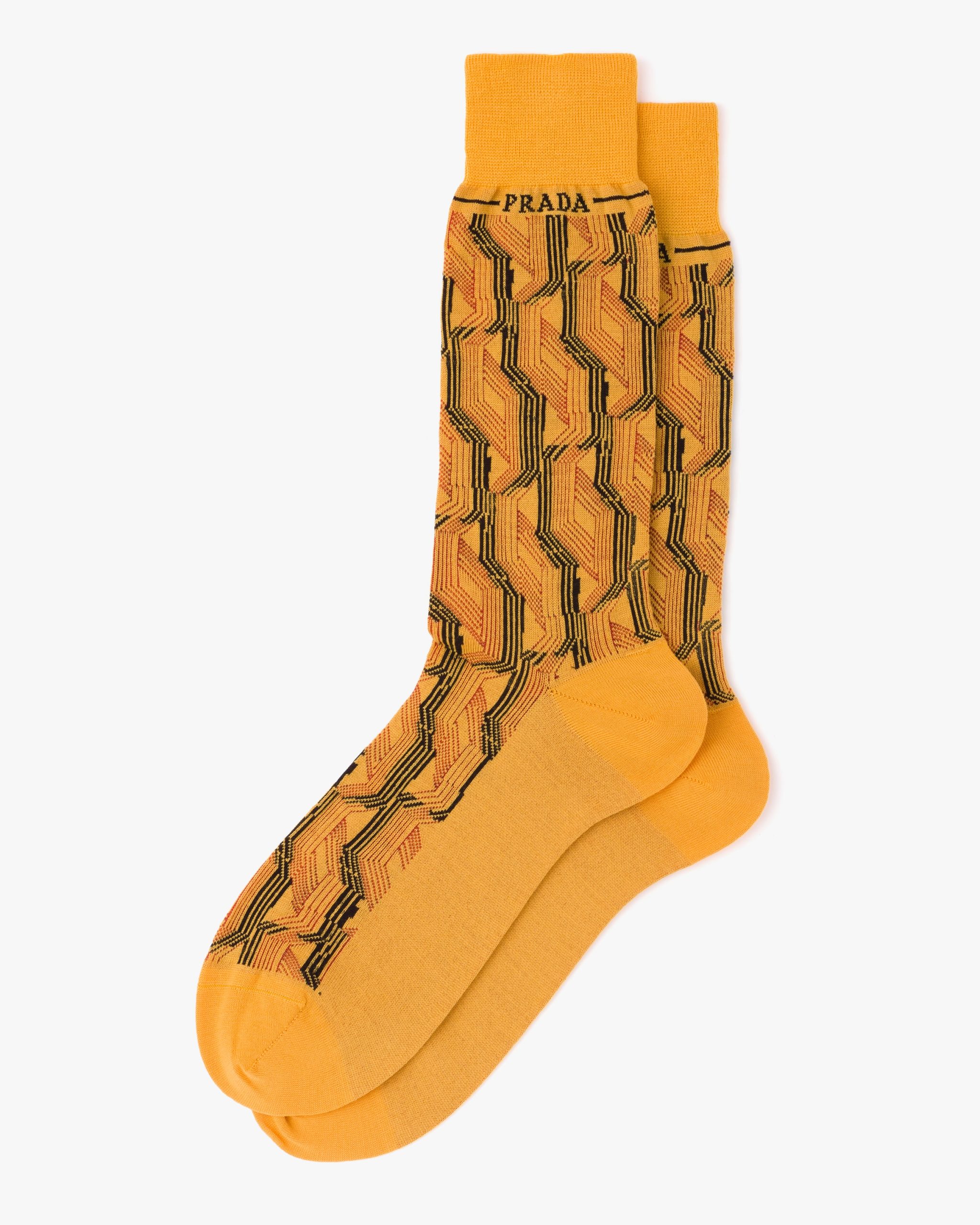 These ankle socks decorated with the lettering logo are made of superfine wool, an iconic Prada fabric characterized by the extreme lightness and fineness of its fibers.